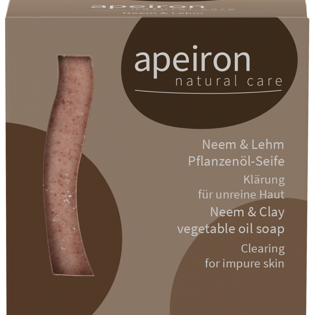 Die Apeiron Pflanzenöl-Seife mit Neem und Lehm ist eine natürliche Lösung für die Pflege unreiner Haut. Sie vereint die kraftvollen Eigenschaften v…