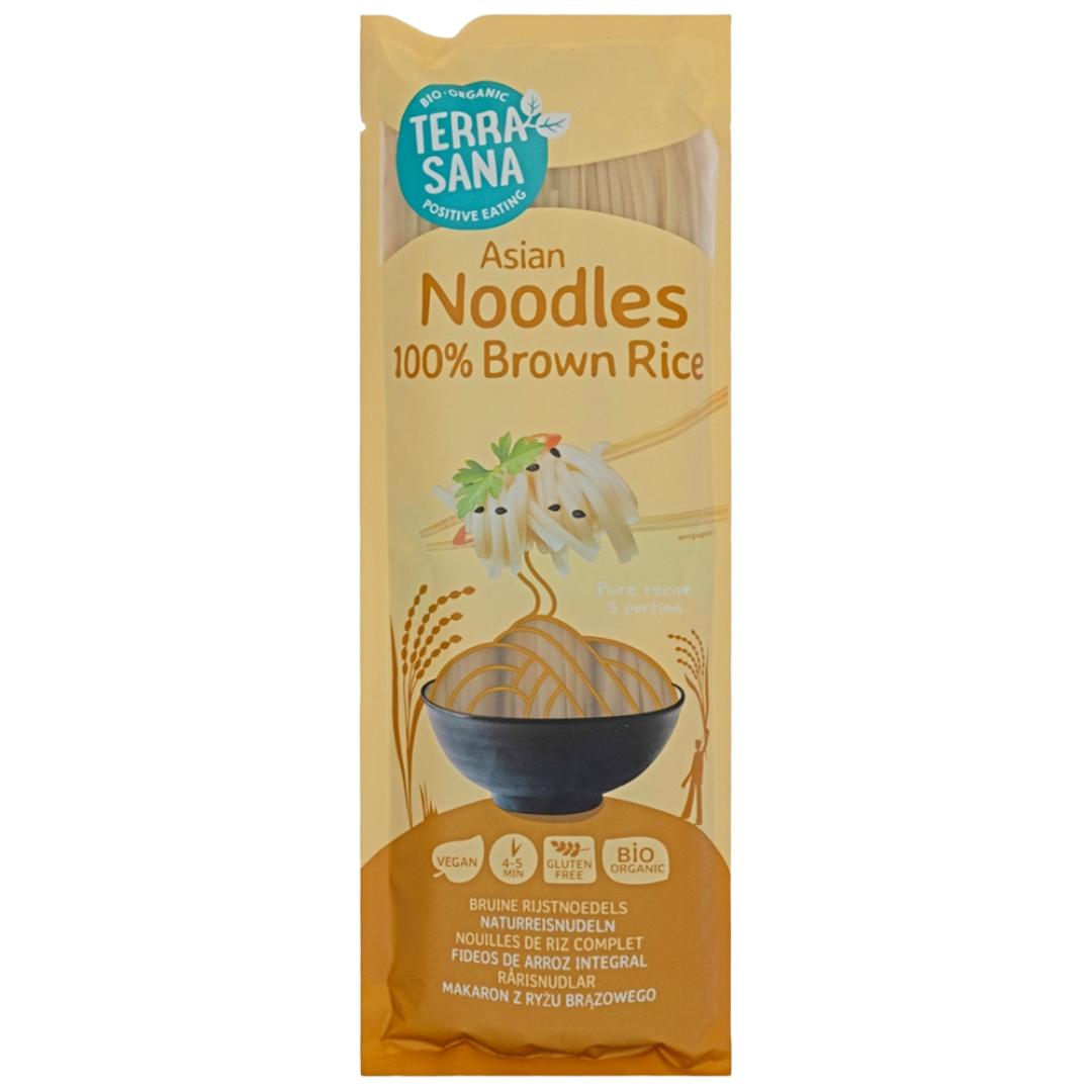 Pur, schnell zubereitet und vielseitig kombinierbar: Die Bio 100 % Naturreisnudeln von TerraSana bestehen ausschließlich aus Bio-Naturreis und Wass…