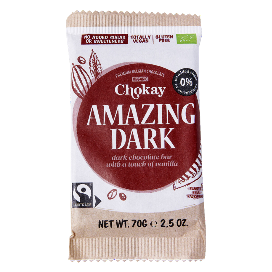 Intensiv, pur und perfekt für Liebhaber dunkler Schokolade: Die Chokay Bar Amazing Dark bringt die volle Kraft der Kakaobohne in eine vegane Bio-Sc…
