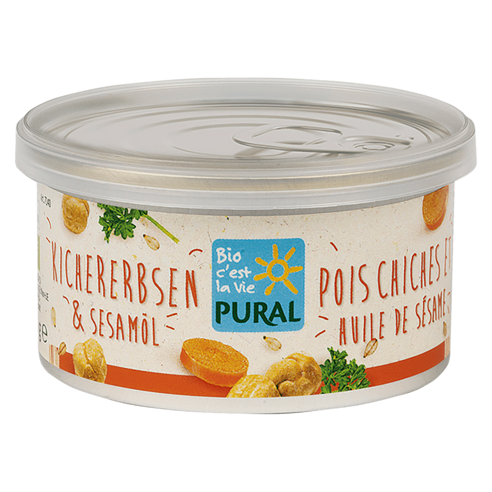 Der Bio Aufstrich Kichererbsen & Sesamöl von Pural vereint alles, was du für ein pflanzliches Abendbrot brauchst: Kichererbsen, Sesamöl und Tof…