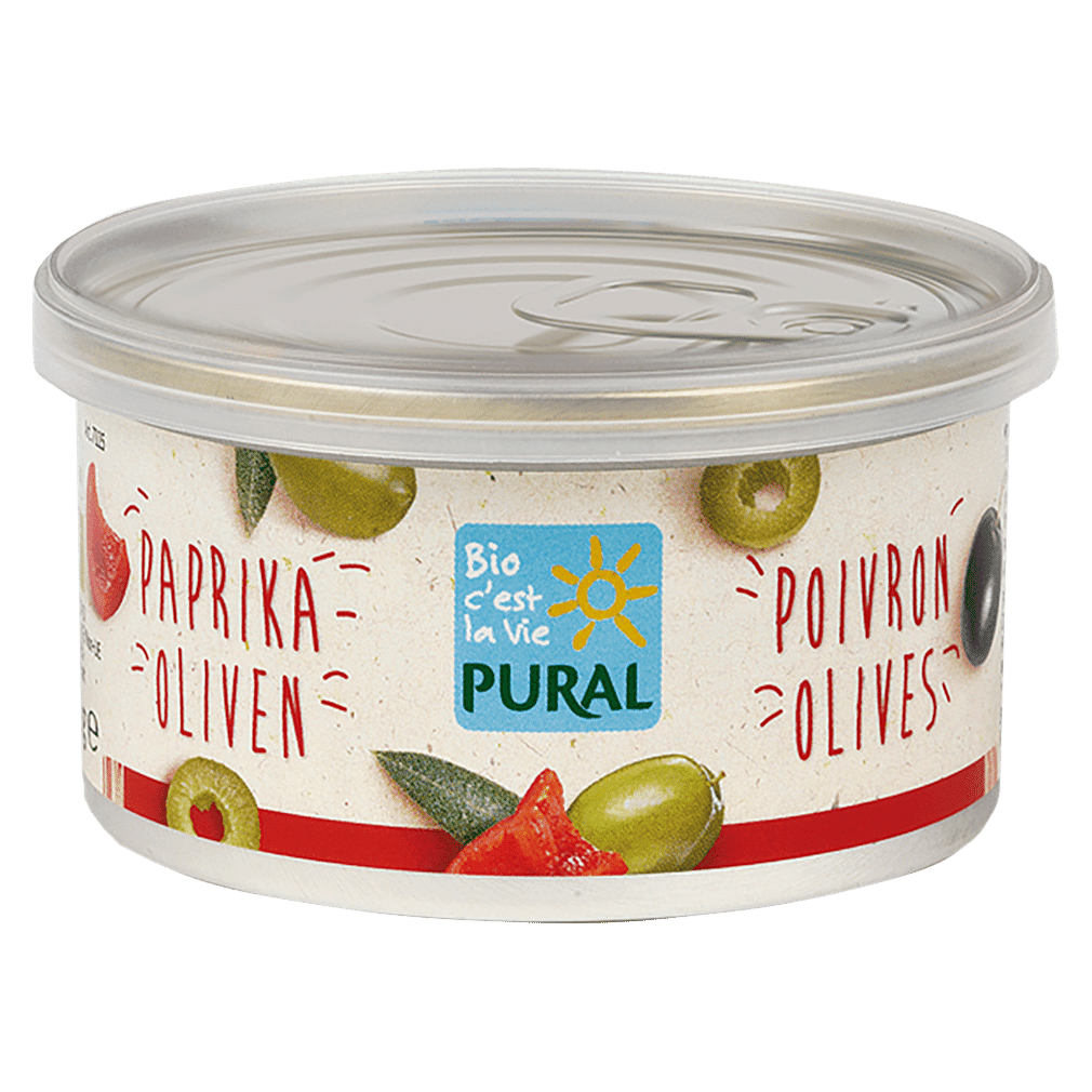 Herzhaft, aromatisch und voll pflanzlicher Vielfalt: Der Bio-Aufstrich Paprika Oliven von Pural kombiniert rote Paprika, grüne und violette Oliven …