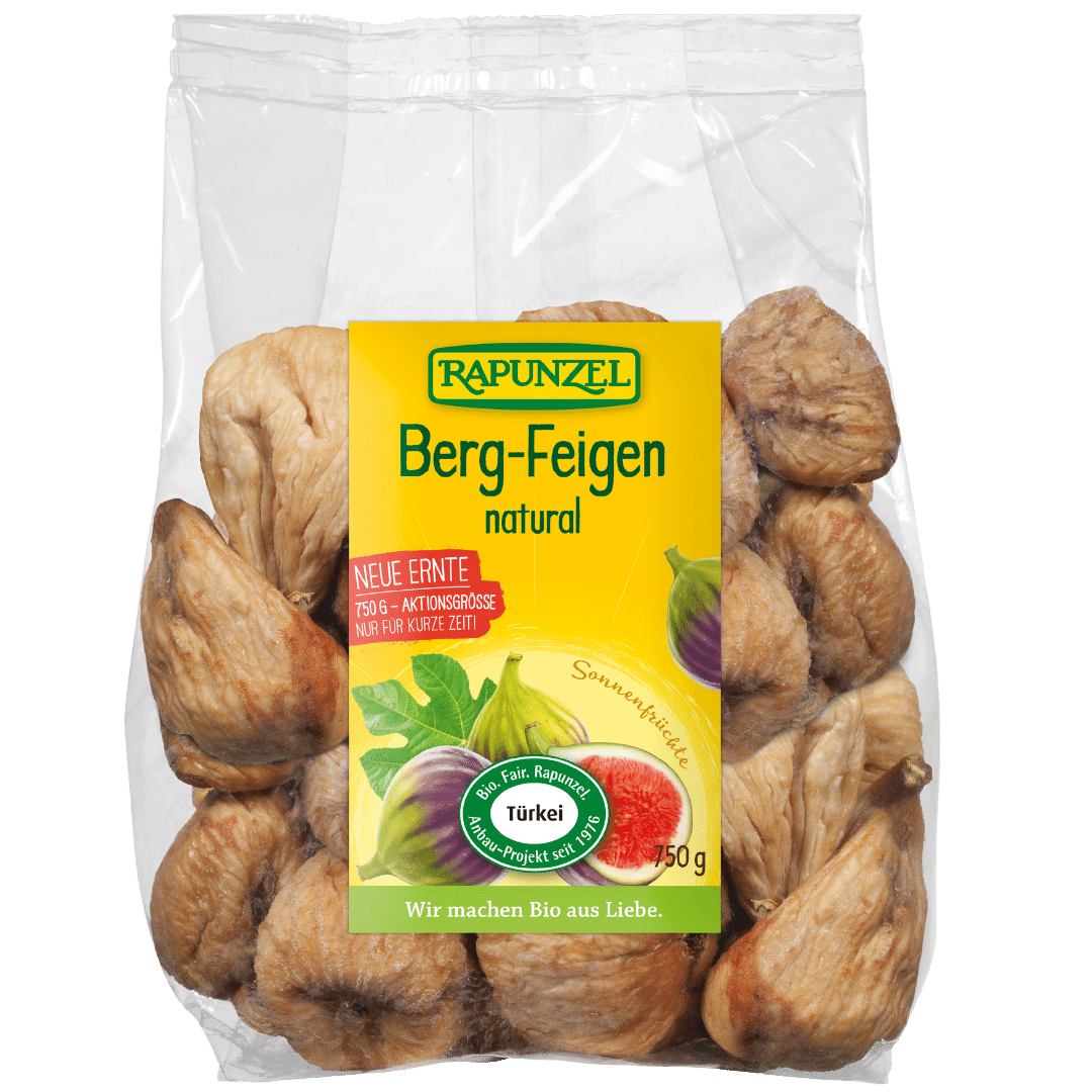 Diese Bio Berg-Feigen natural von Rapunzel stammen aus den sonnenverwöhnten Steilhängen der türkischen Region Aydin. Die aromatischen Früchte wachs…
