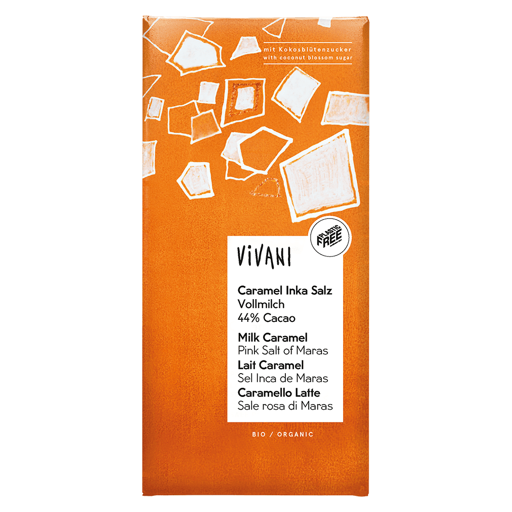 Vollmilch Schokolade mit einem hohen Kakaogehalt von 44%, Caramel Crisps und einer Prise Inka Sonnensalz. Der enthaltene Kokosblütenzucker verleiht…