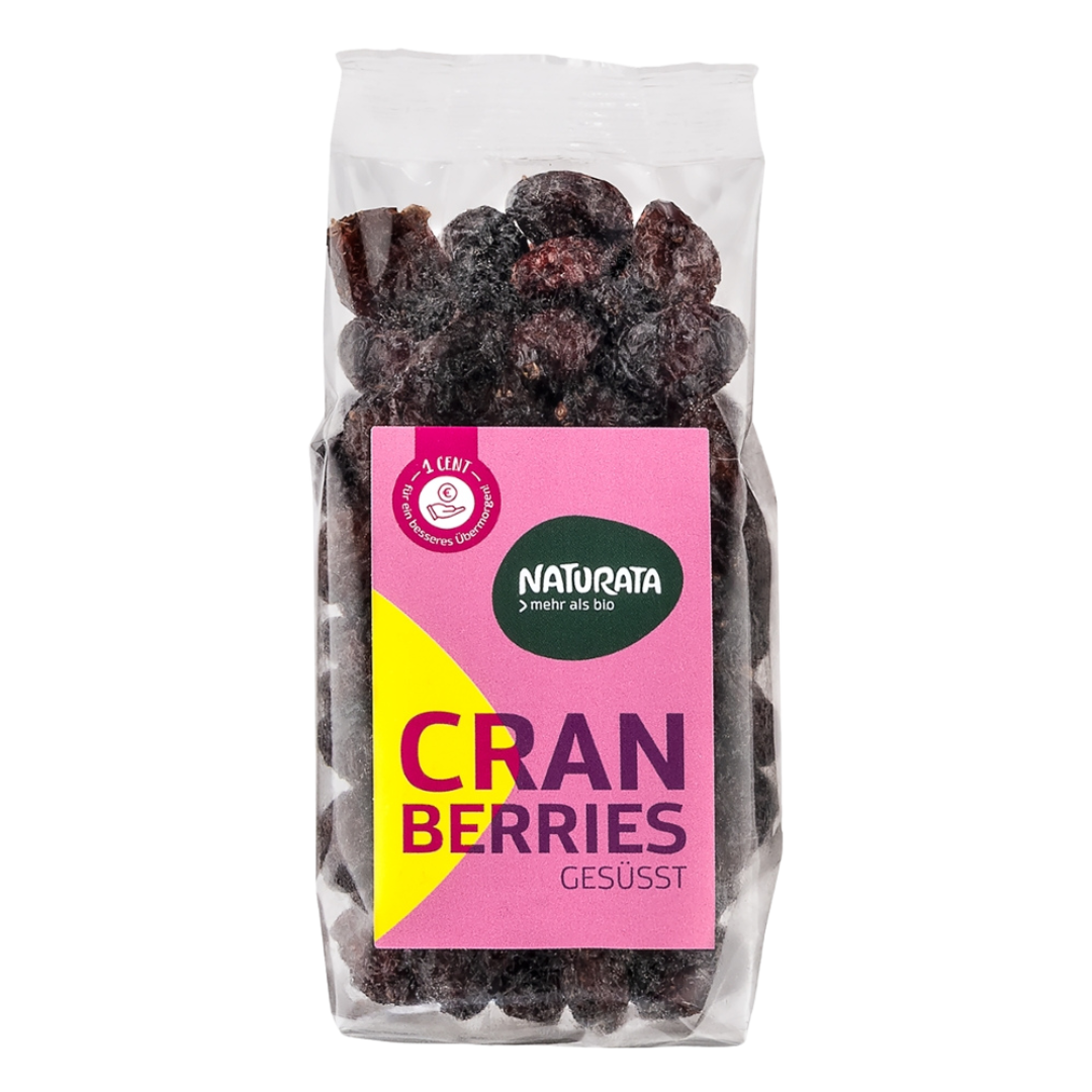 Fruchtig-sauer, leicht süß und angenehm weich ? getrocknete Cranberries sind eine vielseitige Zutat in der Küche. Die Bio-Cranberries von Naturata …