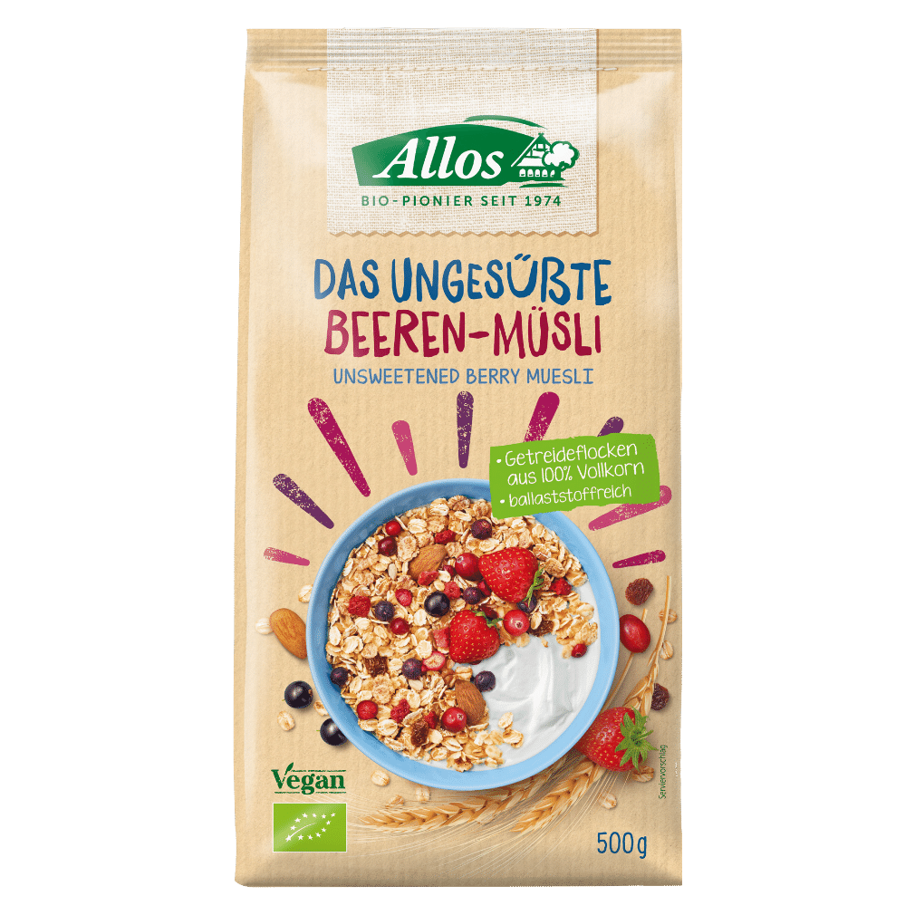 Entdecke den natürlichen Geschmack des Allos Das ungesüßte Beeren-Müsli ? Ganz ohne zusätzlichen Zucker. Dieses Müsli vereint 100% Bio-Zutaten wie …