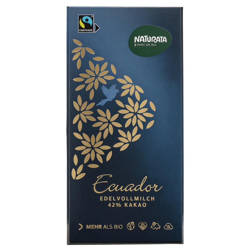 Ein vollmundiger Genuss, der aus den besten Bio-Zutaten entsteht ? die Ecuador Edelvollmilch 42% von Naturata vereint die edelsten Kakaobohnensorte…