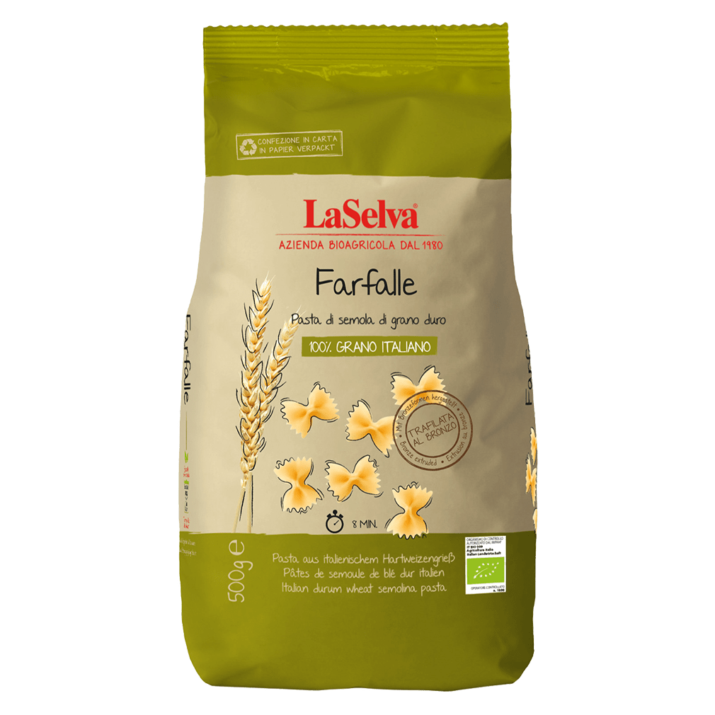 Farfalle sind ein Klassiker der italienischen Küche ? und in dieser Variante besonders hochwertig. Hergestellt aus italienischem Hartweizengrieß in…