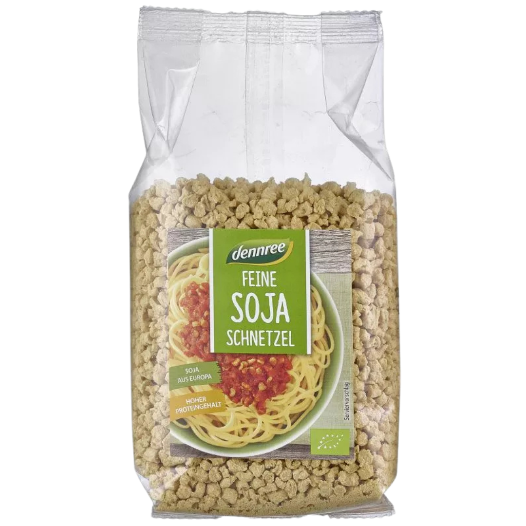 dennree Feine Soja Schnetzel bietet eine besonders feine Struktur, die sich ideal für herzhafte Gerichte wie Bolognese, Gulasch oder Eintöpfe eigne…