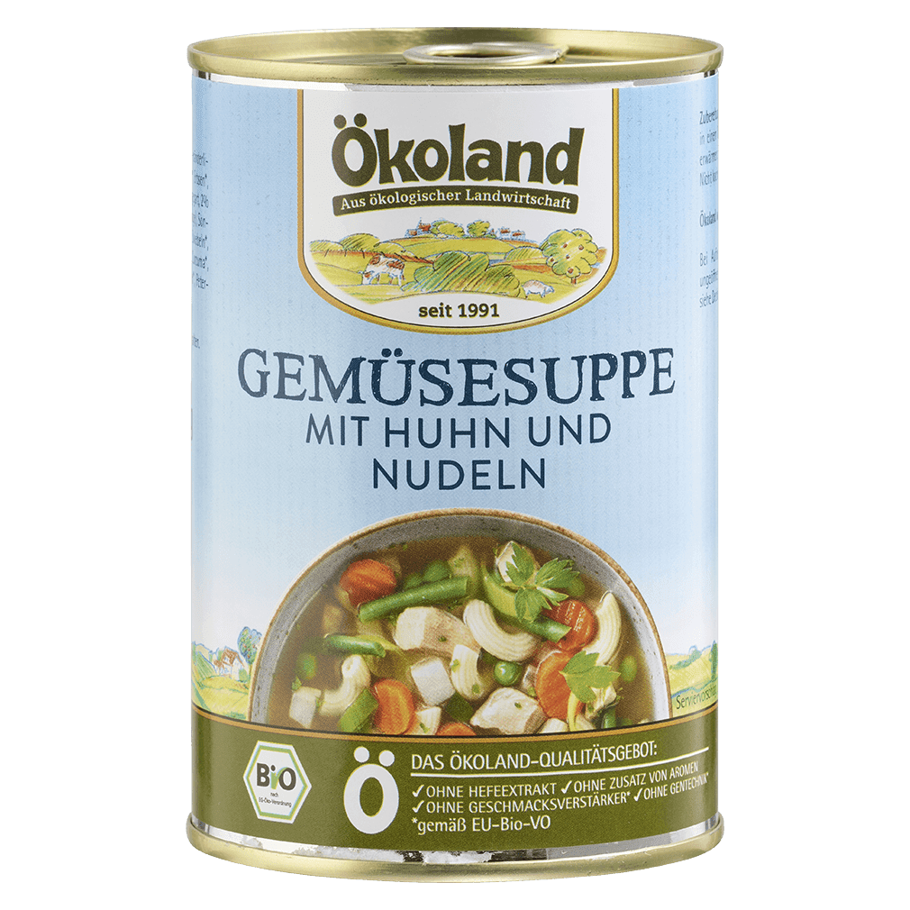 Eine schöne kräftige Gemüsesuppe mit Hühnerfleisch ist das ideale Gericht, wenn es in der Küche einmal schnell gehen muss. Die beliebte Ökoland Gem…