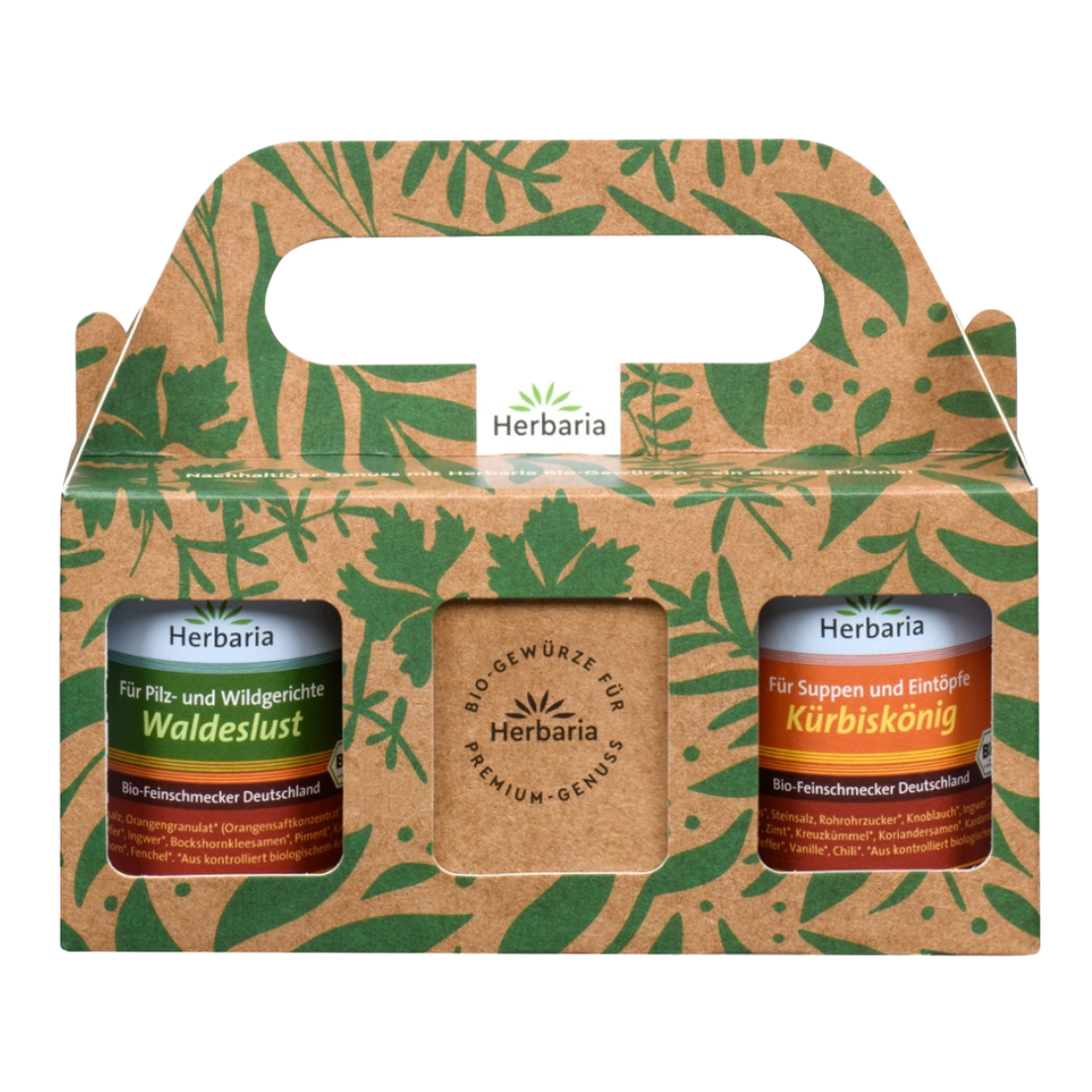 Das Herbaria Gewürze Geschenkset Herbstküche bringt den Geschmack der goldenen Jahreszeit in deine Küche. Mit den Bio-Feinschmecker Gewürzen Kürbis…