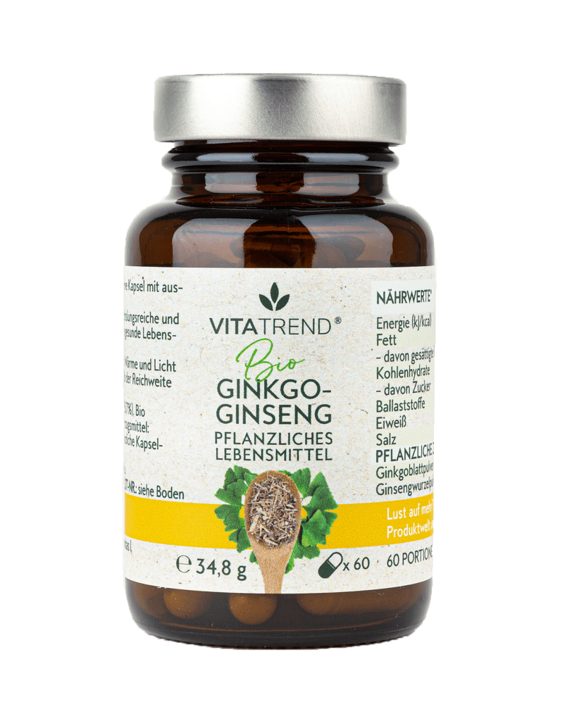 Erlebe die kraftvolle Kombination von Ginkgo und Ginseng in unseren Vitatrend Bio Ginkgo Ginseng Kapseln. Diese hochwertige Nahrungsergänzung biete…