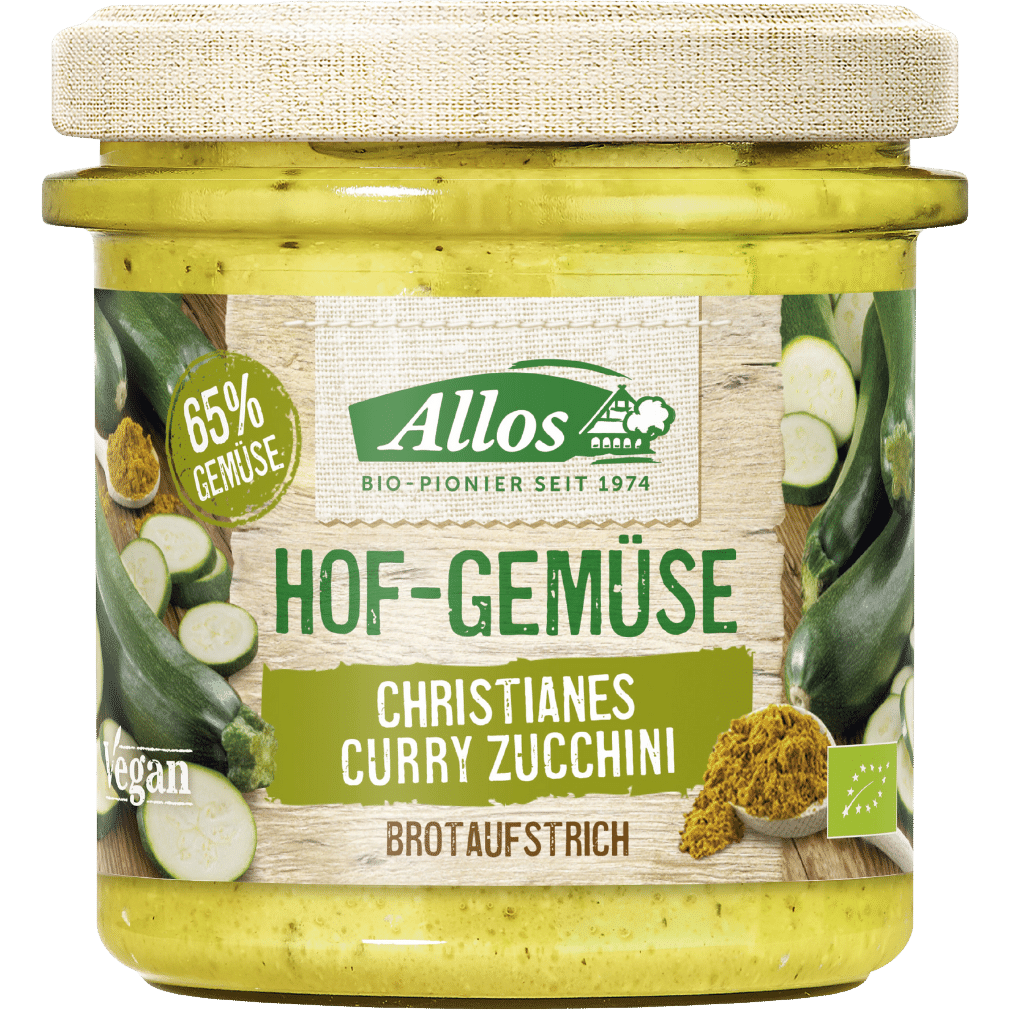 Dieser Aufstrich bringt ein geschmackliches Highlight auf dein Brot. Der Hof Gemüse Christianes Curry Zucchini von Allos kombiniert feines Curry mi…