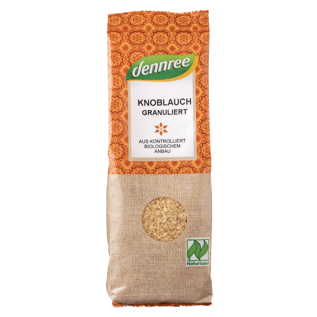 Getrockneter Bio-Knoblauch in 1-3mm großen Stücken zur Verfeinerung von Saucen, Braten und Gerichten. Als Alternative zu frischem Knoblauch.
