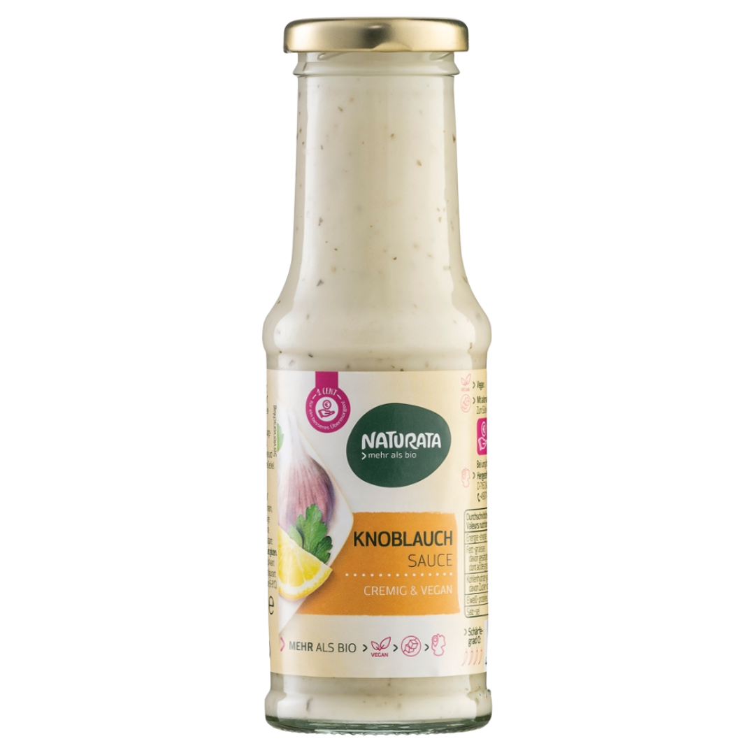 Die Knoblauch Sauce von Naturata bietet eine ausgewogene Kombination aus intensiven Knoblauch-Aromen, einem Hauch Zitrone und Kräutern wie Oregano …