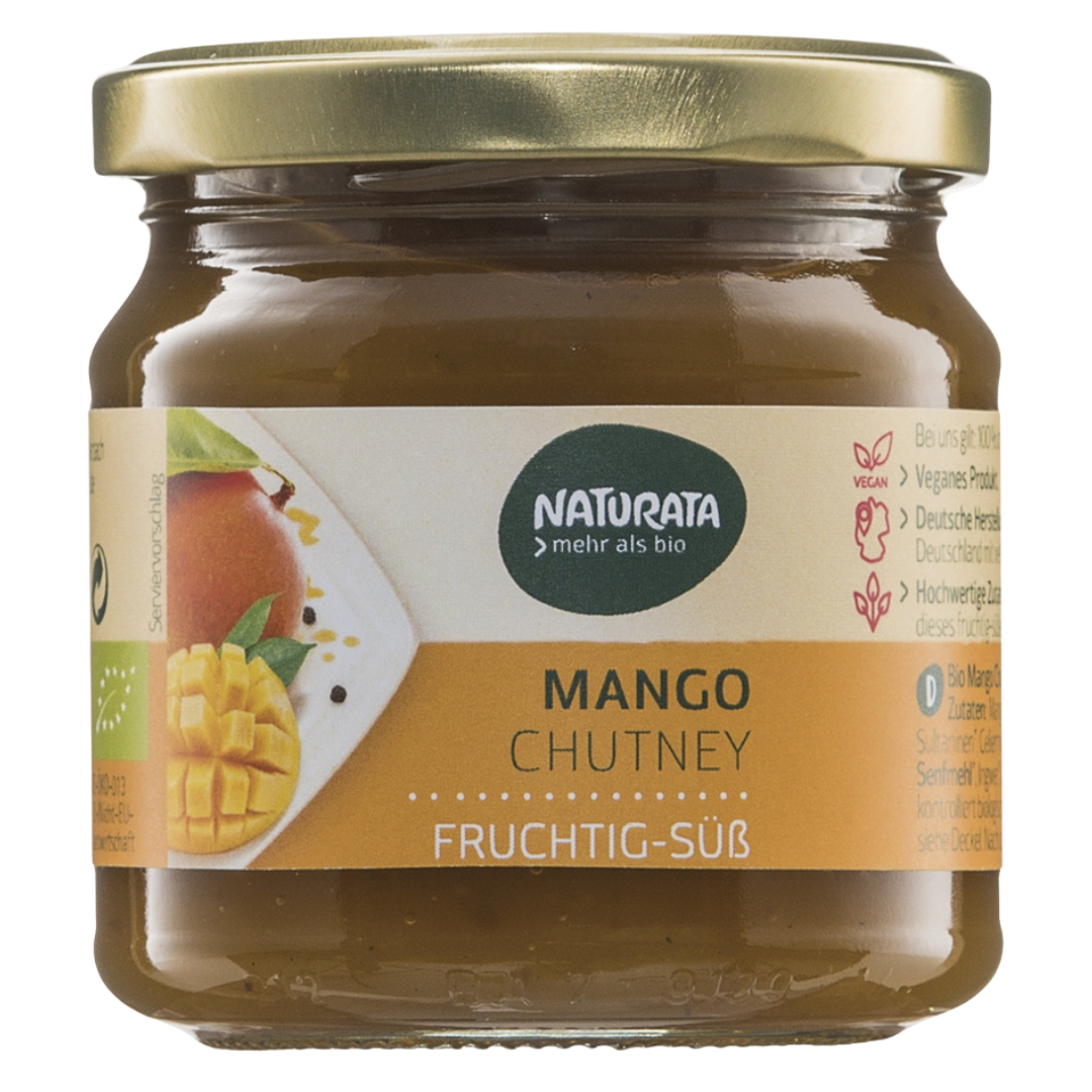 Exotische Aromen, feine Süße und eine leichte Würze ? dieses Mango Chutney von Naturata vereint sorgfältig ausgewählte Bio-Zutaten zu einem unverwe…