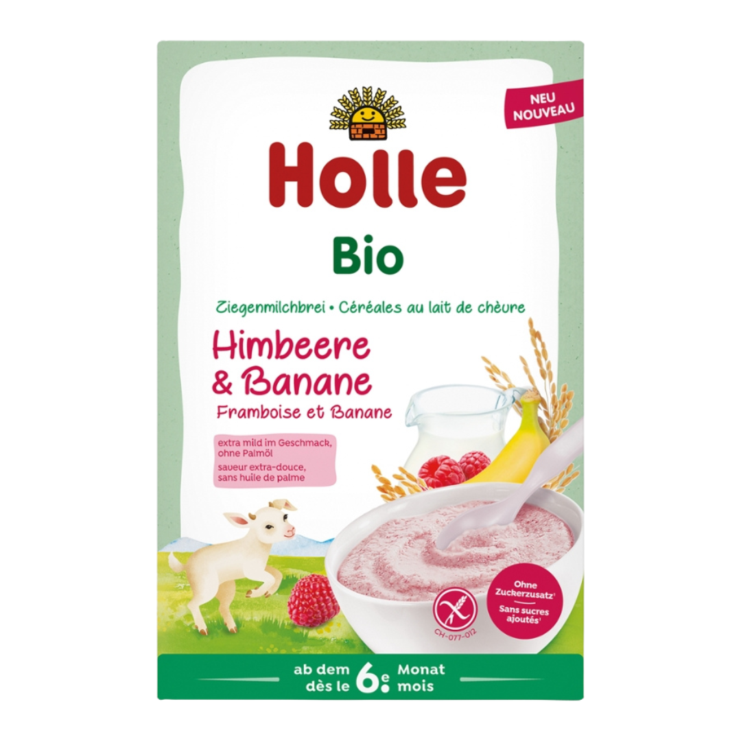Dieser Bio-Milchbrei aus Ziegenmilch verbindet die fruchtige Frische von Himbeeren mit der milden Süße der Banane und sorgt so für ein besonders au…