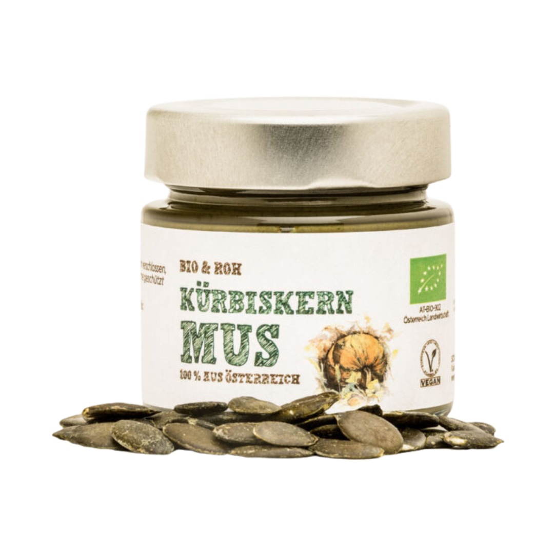 Tiefgrünes Mus aus schmackhaften Kürbiskernen Das Bio Kürbiskernmus von Schalk Mühle sieht schon sehr gut aus! Die wunderbar tiefgrüne Farbe der Kü…