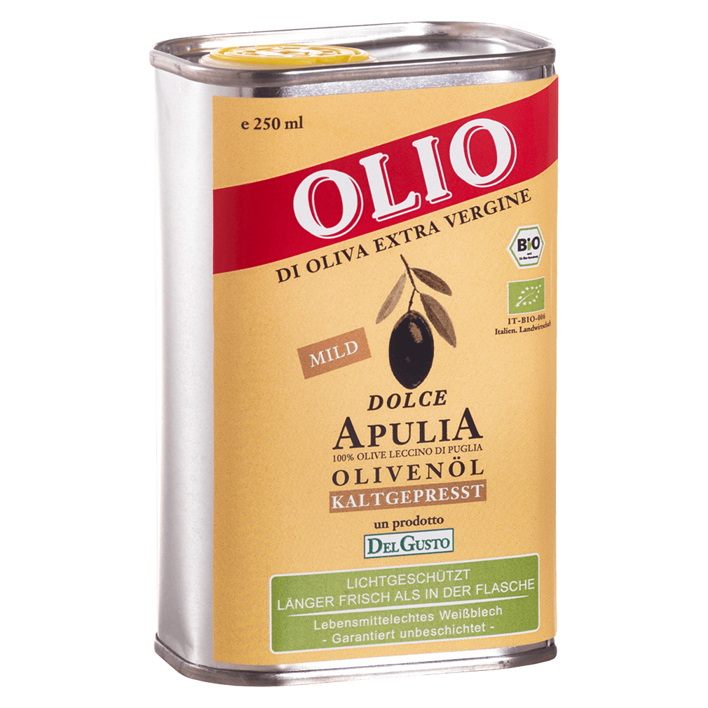 Hochwertiges Bio-Olivenöl aus garantiert apulischen Oliven der Sorte Leccino mit mildem fein fruchtigem Aroma. Das Olivenöl ist extranativ/kaltgepr…