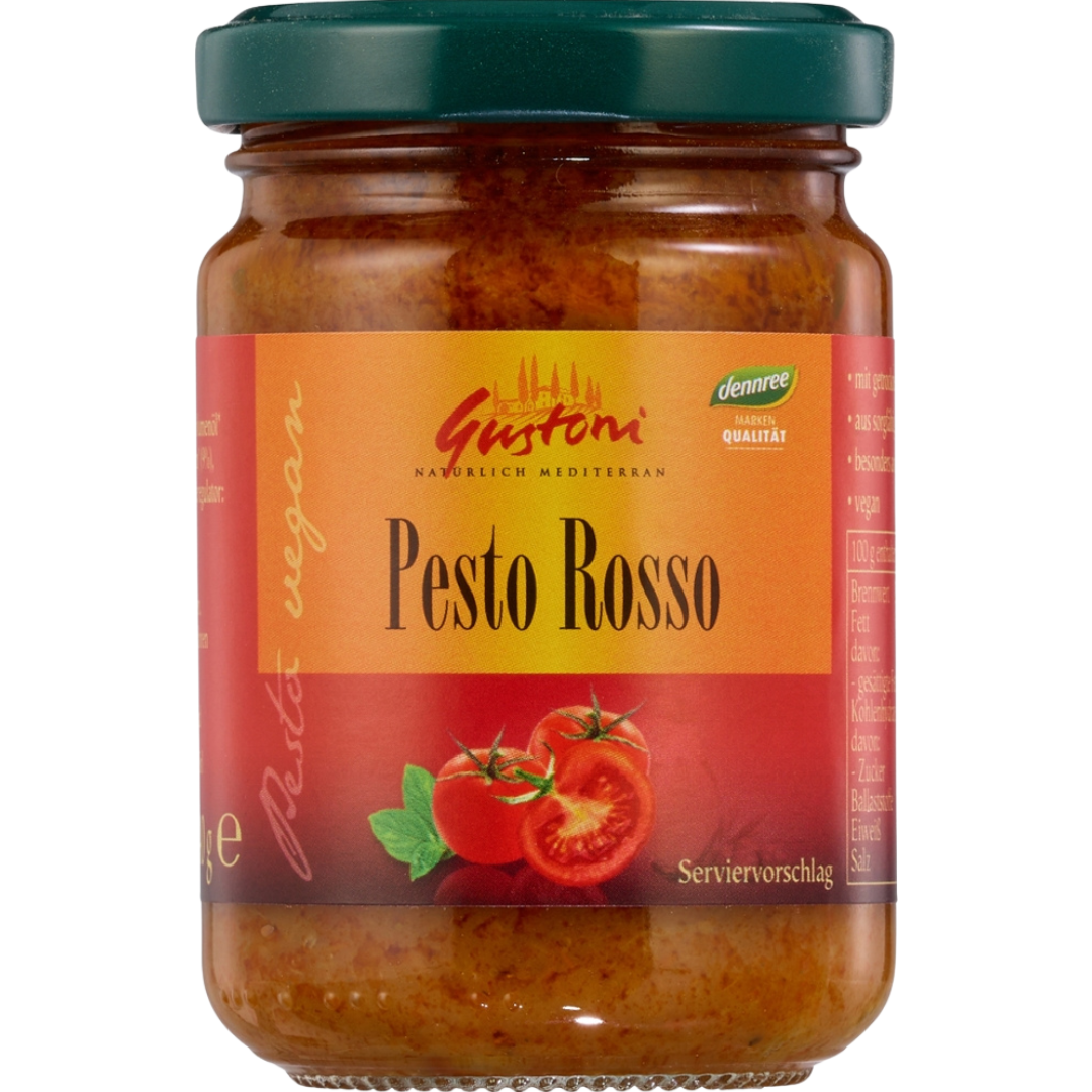 Das Gustoni Pesto Rosso ist eine aromatische Tomaten-Würzpaste, die durch ihre sorgfältig ausgewählten Bio-Zutaten besticht. Getrocknete Tomaten ve…