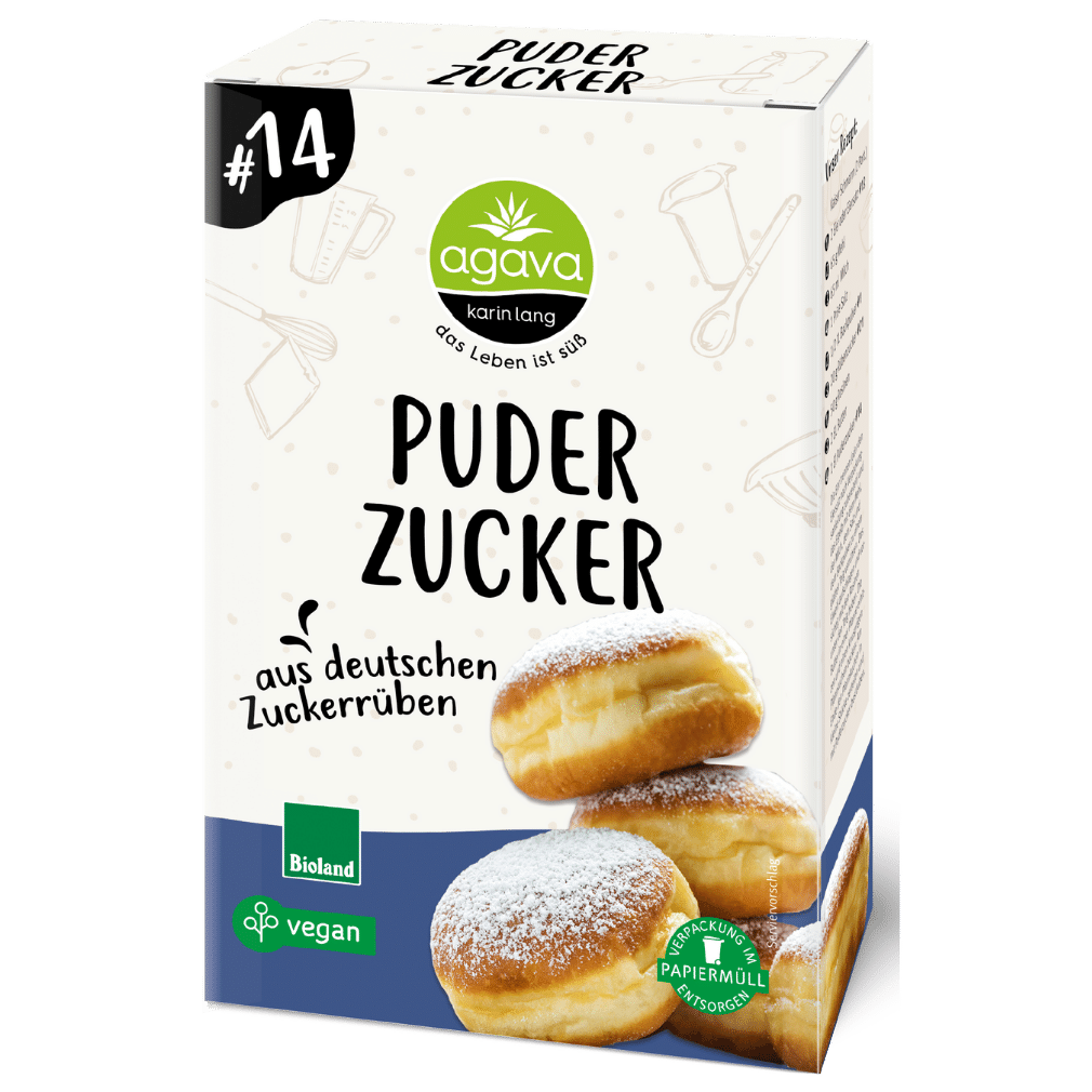 Fein, feiner, Puderzucker – Unser agava Bio Puderzucker aus deutschen Bioland-Zuckerrüben verfeinert Kuchen, Gebäck und Plätzchen. Als Zutat im Tei…