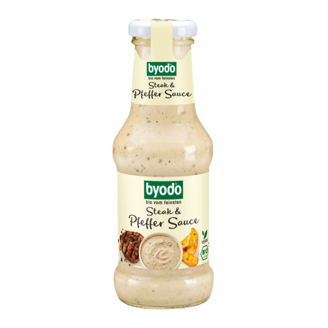 Byodo bringt eine echte Innovation in den Naturkost-Fachhandel: Die erste helle Steak & Pfeffer Sauce aus 100 % Bio-Zutaten. Eine harmonische K…
