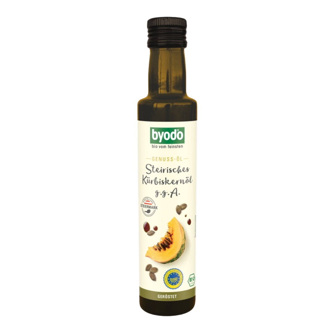 Das Byodo steirische Kürbiskernöl g.g.A. ist ein kulinarisches Juwel, hergestellt aus feinen Bio-Kürbiskernen, die nach traditioneller Handwerkskun…