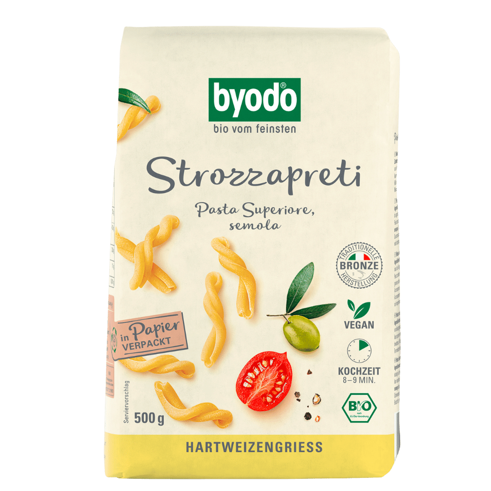 Die Byodo Strozzapreti verdrehen mit ihrem leckeren Geschmack und der kordelartig gedrehten Form jedem Pasta-Fan den Kopf. Die in sich gedrehten Nu…