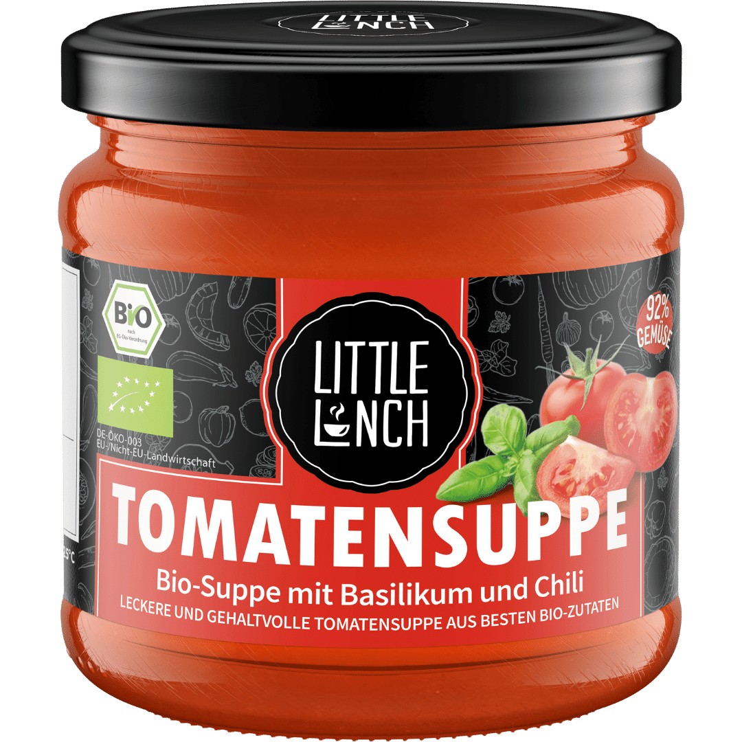 Mit besonders aromatischen Tomaten, einer frischen Basilikum-Note und der Schärfe der Chili ist Little Lunch Tomatensuppe eine wahre Geschmacksexpl…