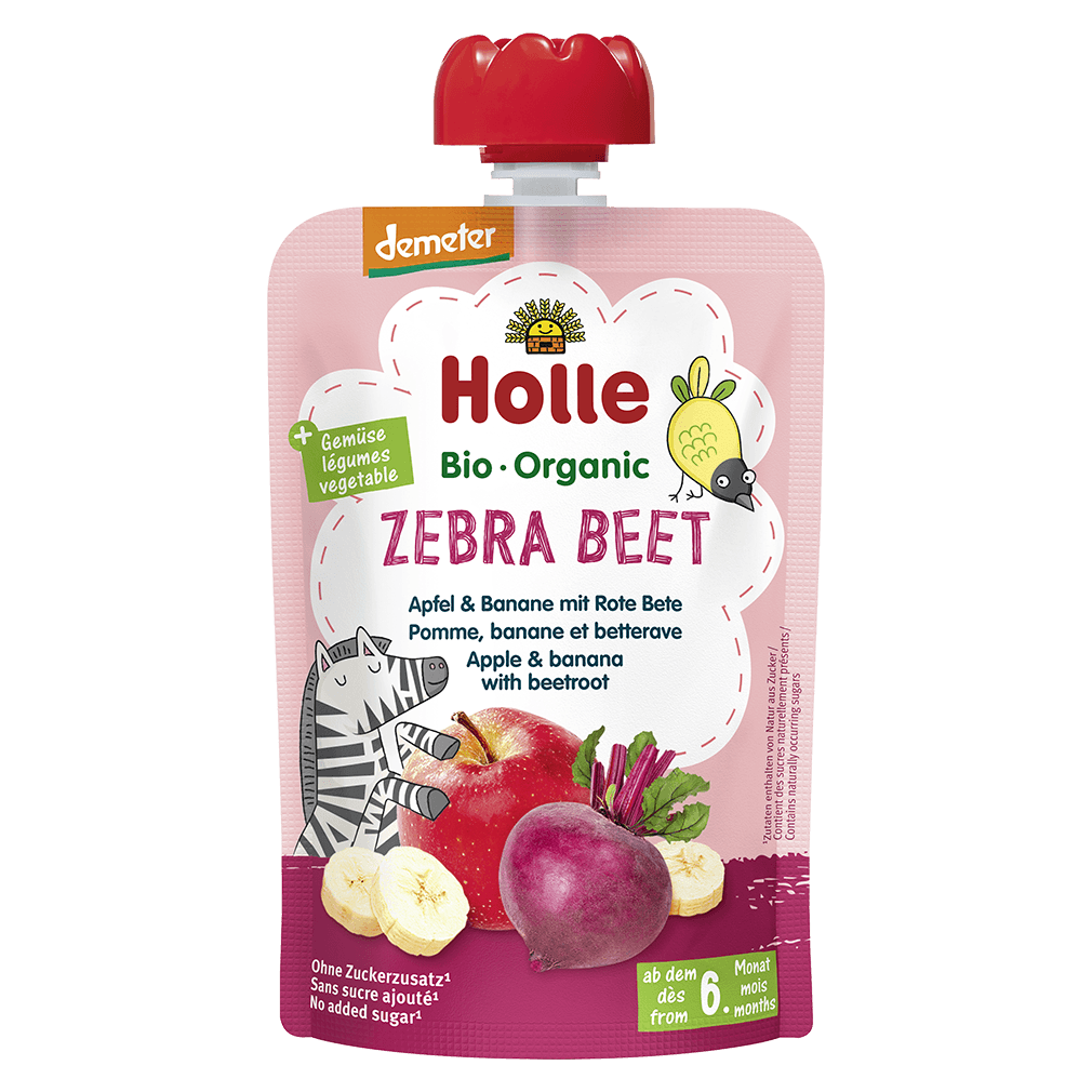 Eintauchen in die Welt der natürlichen Aromen mit dem Holle Bio Zebra Beet ? eine einzigartige Kombination aus Apfel, Banane und Rote Bete, die nic…