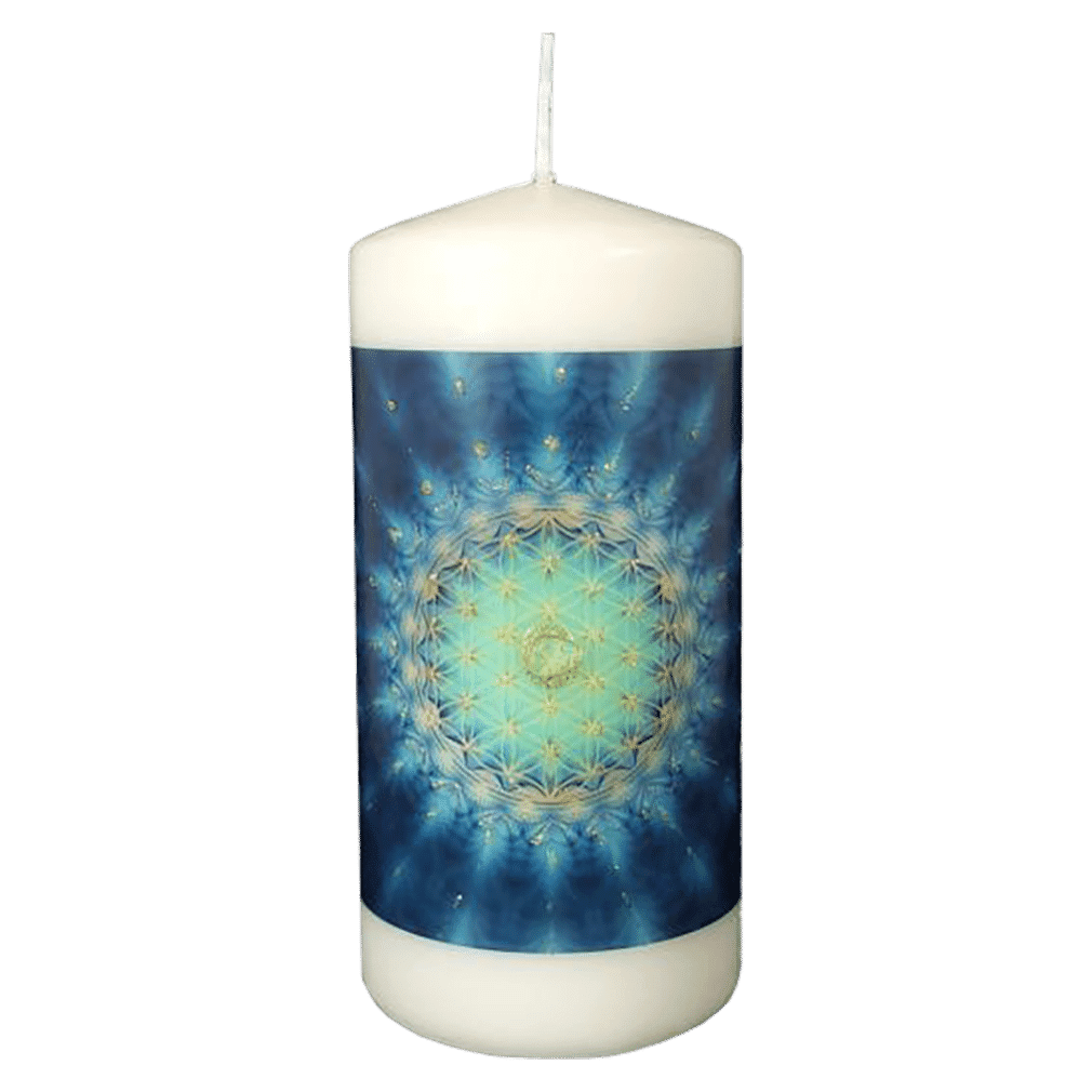 Die Engelalm Energiekerze ?Blume des Lebens Blau? verzaubert durch ihre harmonische Ausstrahlung und sorgt für ein wohltuendes Ambiente in deinem Z…