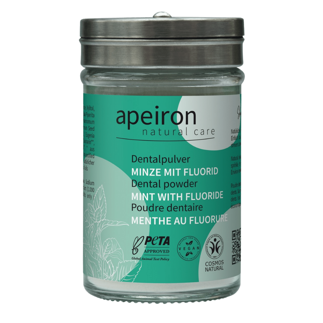 Apeiron Dentalpulver Minze + Fluorid bietet eine sanfte und natürliche Zahnpflege, die sich perfekt für empfindliches Zahnfleisch und Zähne eignet….