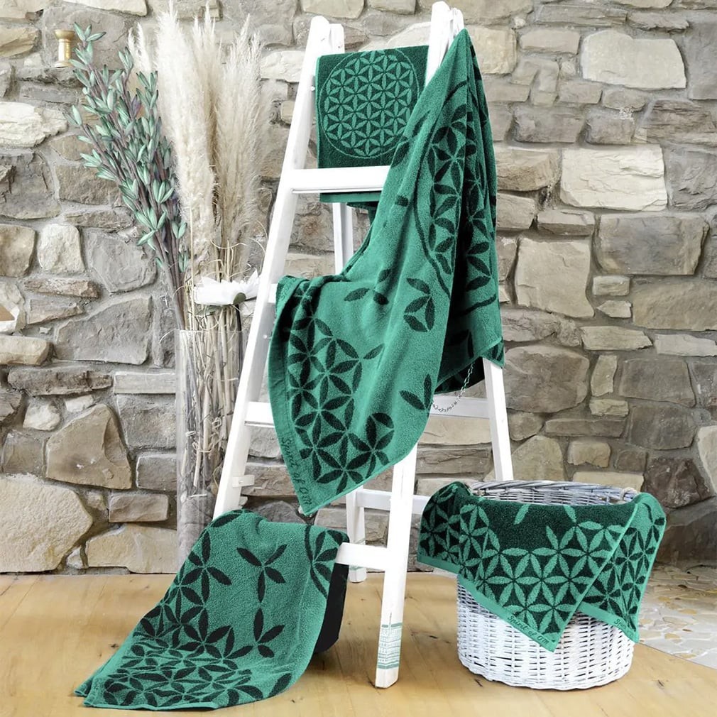 Das Spirit of Om Frotteetuch „Blume des Lebens“ in der Heilfarbe Grün bietet dir die perfekte Kombination aus hochwertiger Bio-Qualität und der woh…