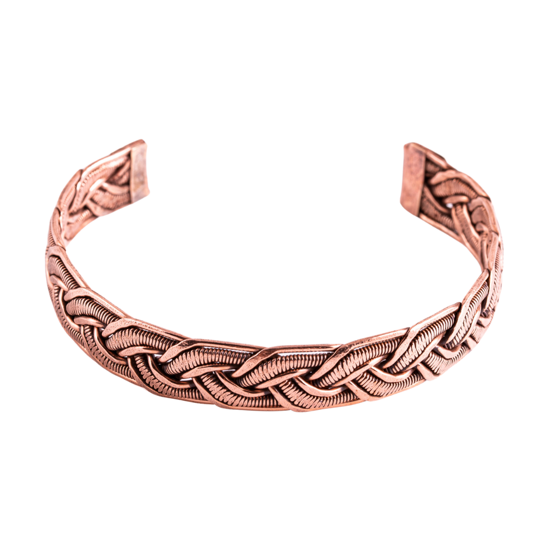 Dieser Kupfer-Armreif vereint traditionelles Design mit moderner Verarbeitung. Das geflochtene Muster verleiht ihm eine dezente Struktur, während d…