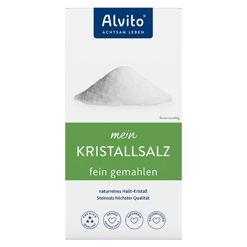 Alvito mein KristallSalz, fein gemahlen, ist ein naturreines Salz, das aus kontrollierter biologischer Erzeugung stammt. In der praktischen 500g-Pa…