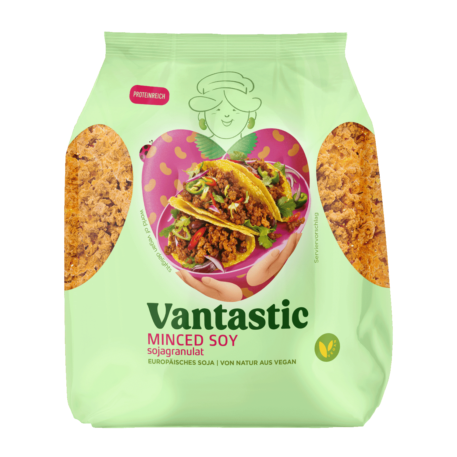 Hackfleisch-Alternative für alle Fälle Klein, fein und zu allem bereit. Dürfen wir vorstellen: die köstlichen Hackfleisch-Alternative für dein veganes Menü. Mit dem Minced Meat-artigen Sojagranulat von Vantastic lassen sich so allerhand veganes Soulfood zubereiten! Von der herrlichen veganen Bolognese-Soße über selbstgemachte Bratlinge bis hin zu herzhaften veganen Füllungen für Rouladen und gefüllte Paprika. Und das ganz unkompliziert und schnell. Kurz in heißer Gemüsebrühe einweichen, a…