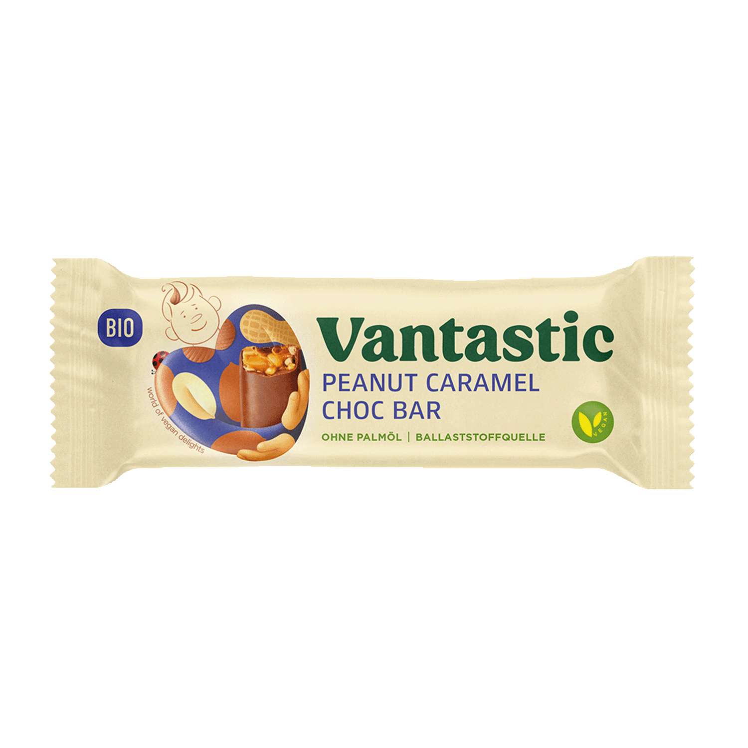 Veganer Erdnuss-Karamell-Riegel in Bio-Höchstform Eine kräftig-süße Erdnuss-Karamell-Füllung im riegelförmigen Schokomantel – kommt dir bekannt vor? Kein Wunder. Wer Snickers mag, wird die veganen Peanut Caramel Choc Bars von Vantastic lieben! Das klassische Kraftpaket unter den Schokoriegeln kommt hier allerdings in der advanced Deluxe-Version, ganz so wie er sein soll. Denn komplett vegan, bio und ohne Palmöl bietet der Vantastic Bio-Riegel das Beste beider Welten: augenverdrehenden G…