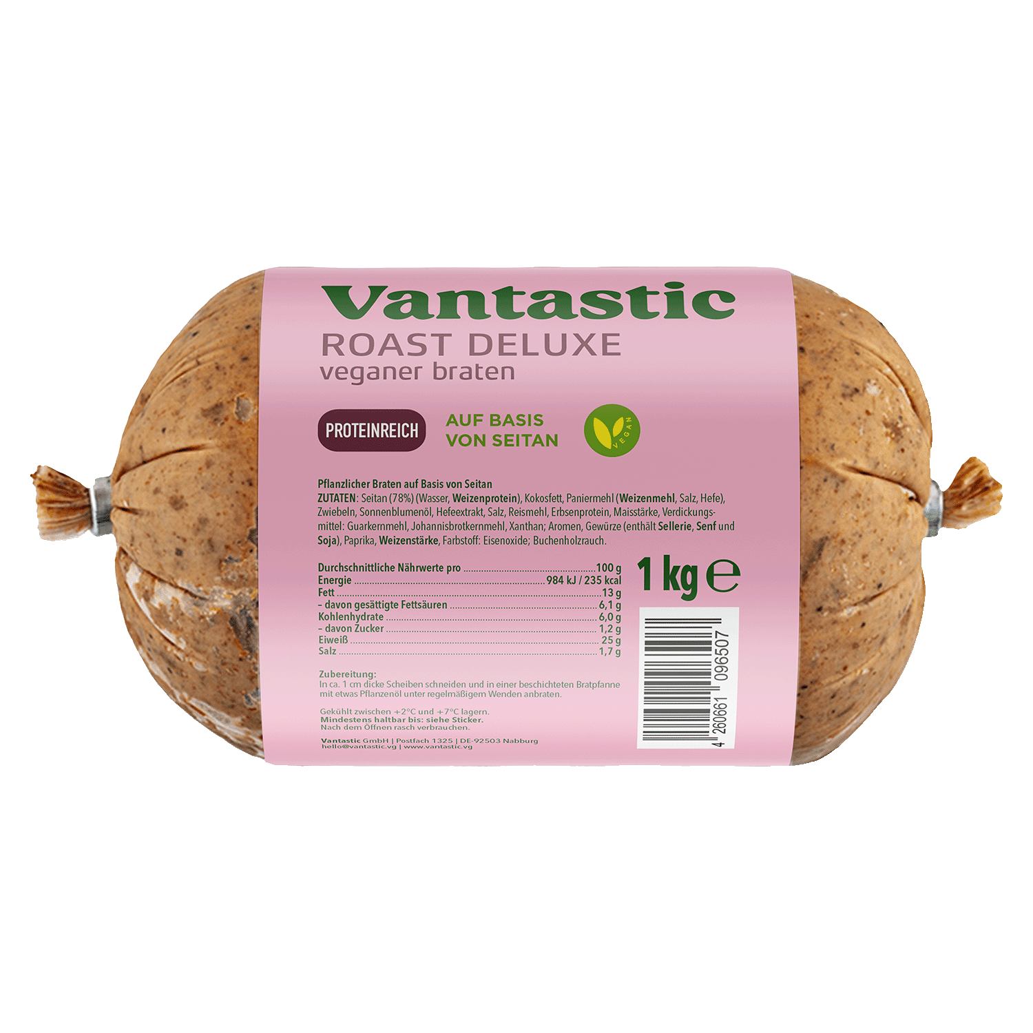 Zu jeder Zeit ein festlicher Schmaus auf dem Esstisch: Der einzigartige Vantastic Braten Deluxe! Ein Braten ist das ideale Gericht für die Familie, eine große Runde und für Feste aller Art. Wenn der herrliche, verführerische vegane-Bratenduft aus dem Backofen durch das Haus zieht, läuft schon jedem das Wasser im Mund zusammen. Schnell wird damit der Mittagstisch oder das Dinner am Abend zum kulinarischen Rahmen eines Sonn- oder feiertags. Mit feinen Bratengewürzen abgeschmeckt und überzeugend…