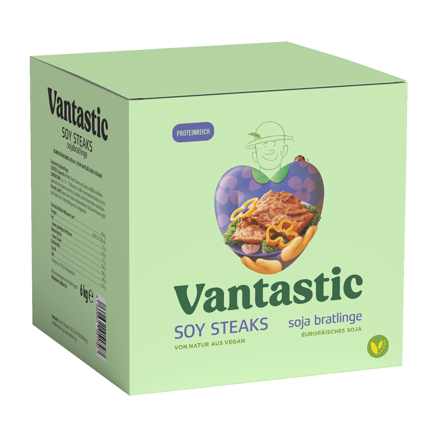 Sojabratlinge für alle Fälle Fein und vielseitig: Mariniere oder paniere sie, wirf sie auf den Grill oder hau sie in die Pfanne! Mach mit ihnen, was du willst, wie du es willst, wann du willst. Denn die Vantastic Soy Steaks sind für die vegane Küche genauso praktisch wie abwechslungsreich. Von ihrem köstlichen Geschmack ganz zu schweigen. Das Beste: Kulinarisch kannst du dich mit ihnen richtig ausleben. Die texturierten Sojabratlinge sind die unangefochtenen Alleskönner unter den Sojaflei…