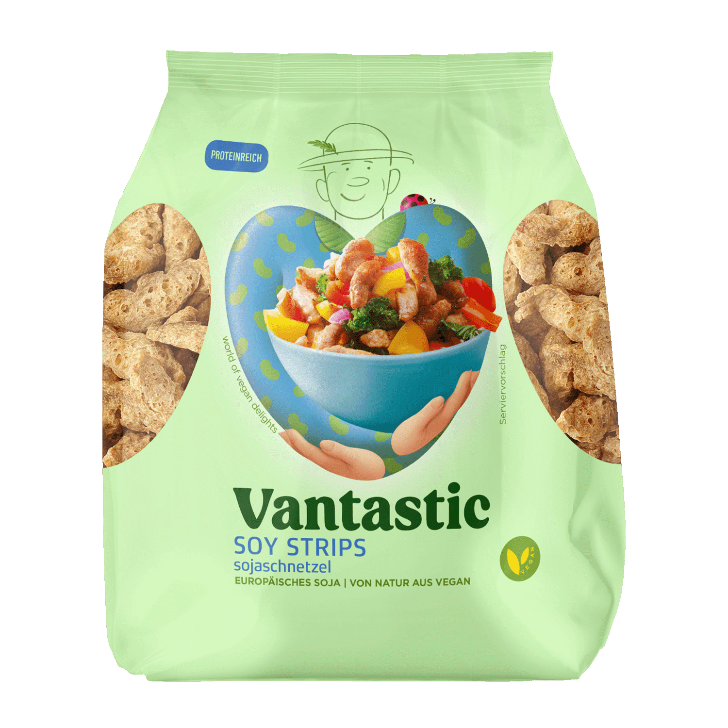 Sojastreifen für alle Fälle Klein, fein und zu allem bereit. Dürfen wir vorstellen: die köstlichen Kernstücke für dein veganes Menü. Die feinen Soja-Streifen sind die König:innen deines veganen Ceasar Salads, deiner Pilzsoße auf veganen Spätzle oder für alles, wozu Oma noch ihr „Geschnetzeltes“ genommen hat. Die Streifen sind dabei so köstlich wie vielseitig: Mariniere oder paniere sie, wirf sie auf den Grill oder hau sie in die Pfanne! Mach mit ihnen, was du willst, wie du es willst, wan…