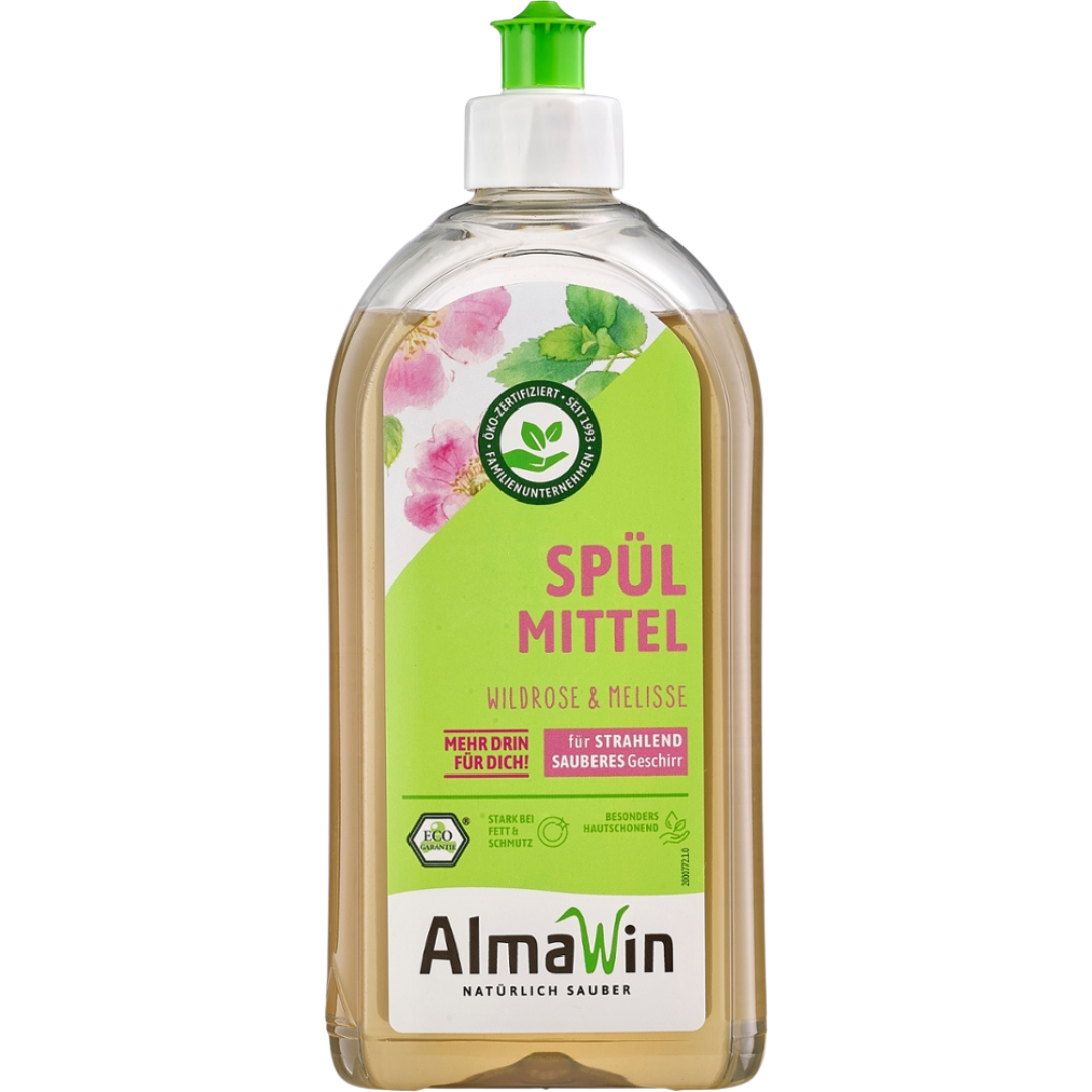 Mit dem AlmaWin Spülmittel Wildrose Melisse wird die Geschirrreinigung zum frischen Erlebnis. Das Spülmittel kombiniert die belebende Kraft der Mel…