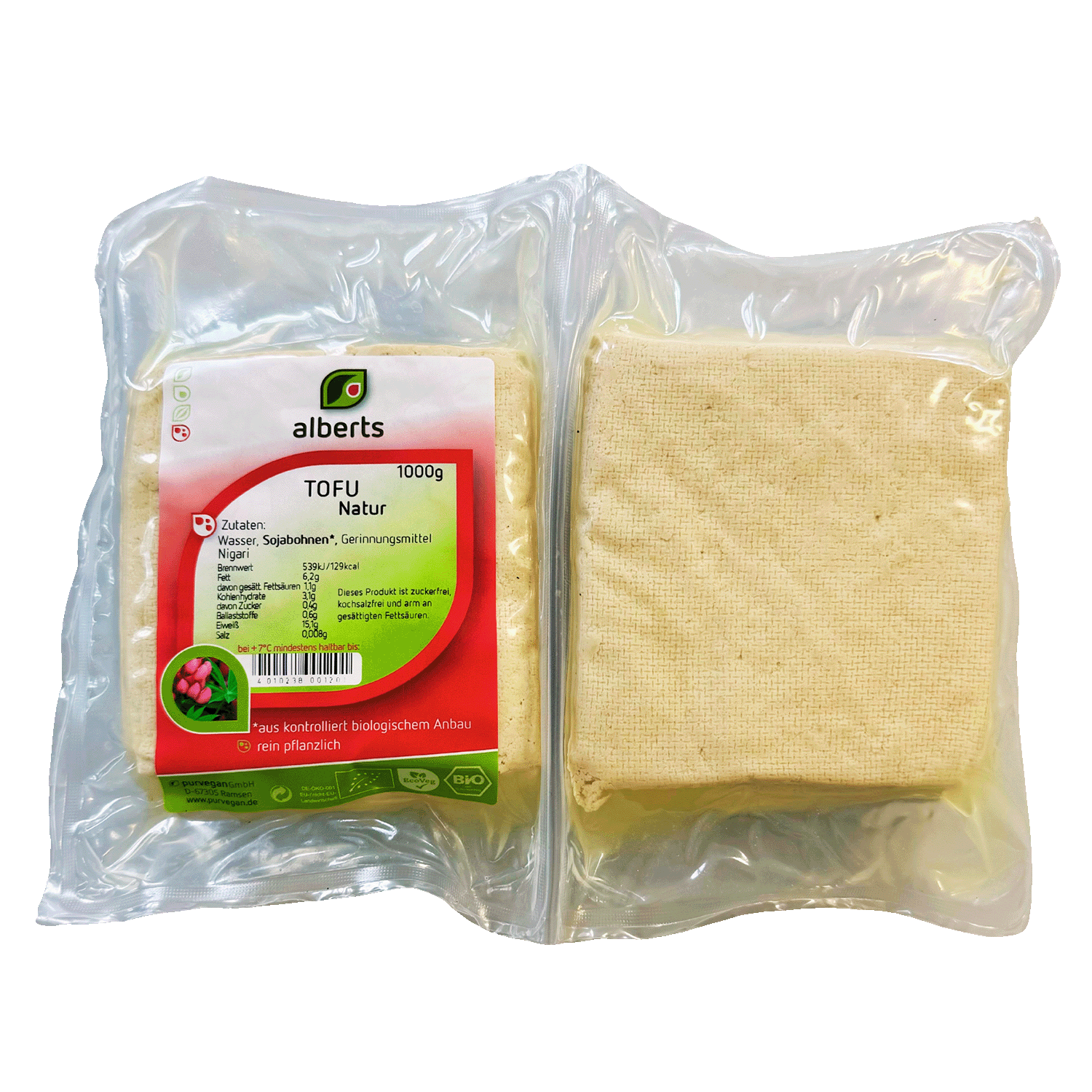 Bio-Tofu satt und köstlich Nichts vermasselt einem die Tofu-Tour mehr als zu wenig Tofu zur falschen Zeit. Alberts weiß das. Deshalb gibt es den Bio-Tofu von Alberst nicht nur im handlichen 250 g Stück, sondern auch gleich im gastronomisch-großen 1 kg Block. Je nach Geschmack geräuchert oder Natur. Beides in herausragender Bio-Qualität und absolut köstlich. Also, nichts wie ran den Tofu! Besser is(s)t das … Vegane Vleisch-Alternativen aus Lupinen oder rein pflanzliche Klassiker au…