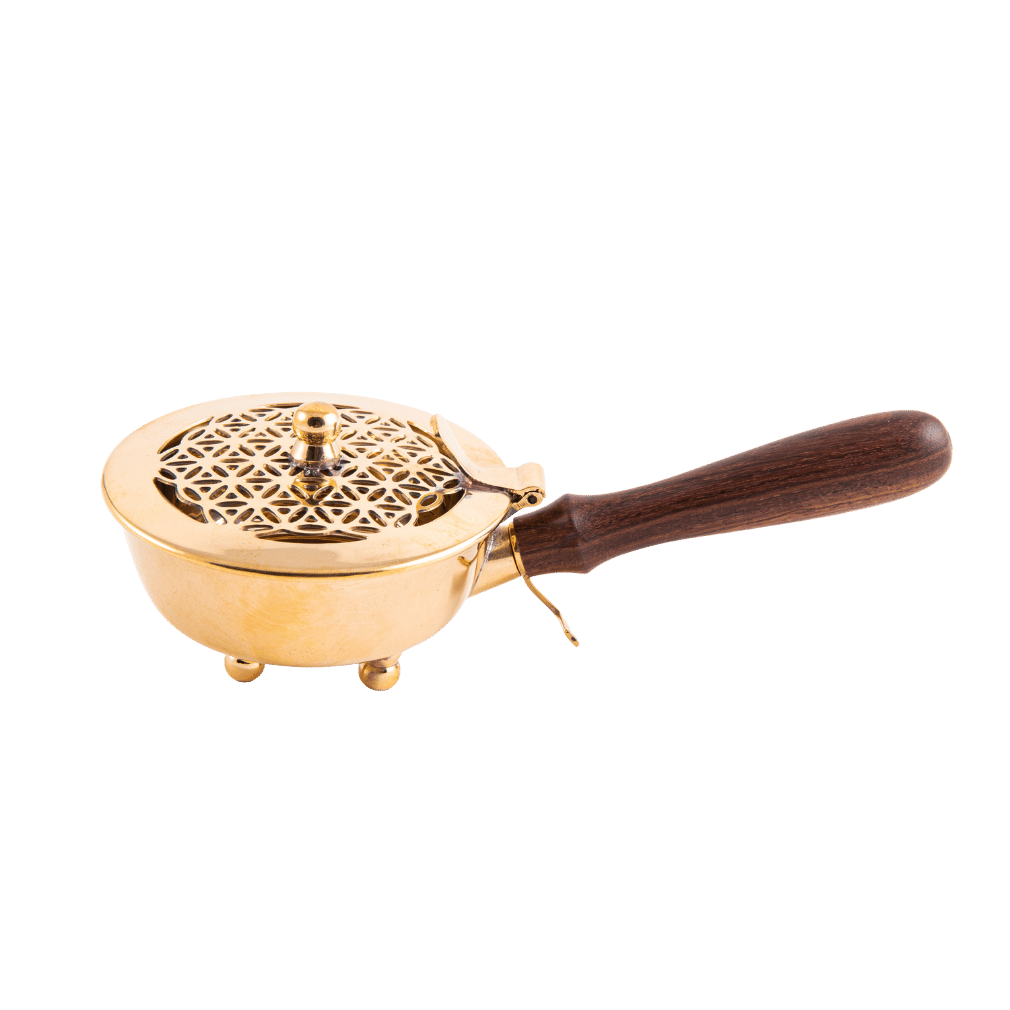 Das Tragegefäß ?Blume des Lebens? aus Messing von Berk begleitet dich stilvoll bei deinen Räucherungen. Mit seinem eleganten Design und der kraftvo…