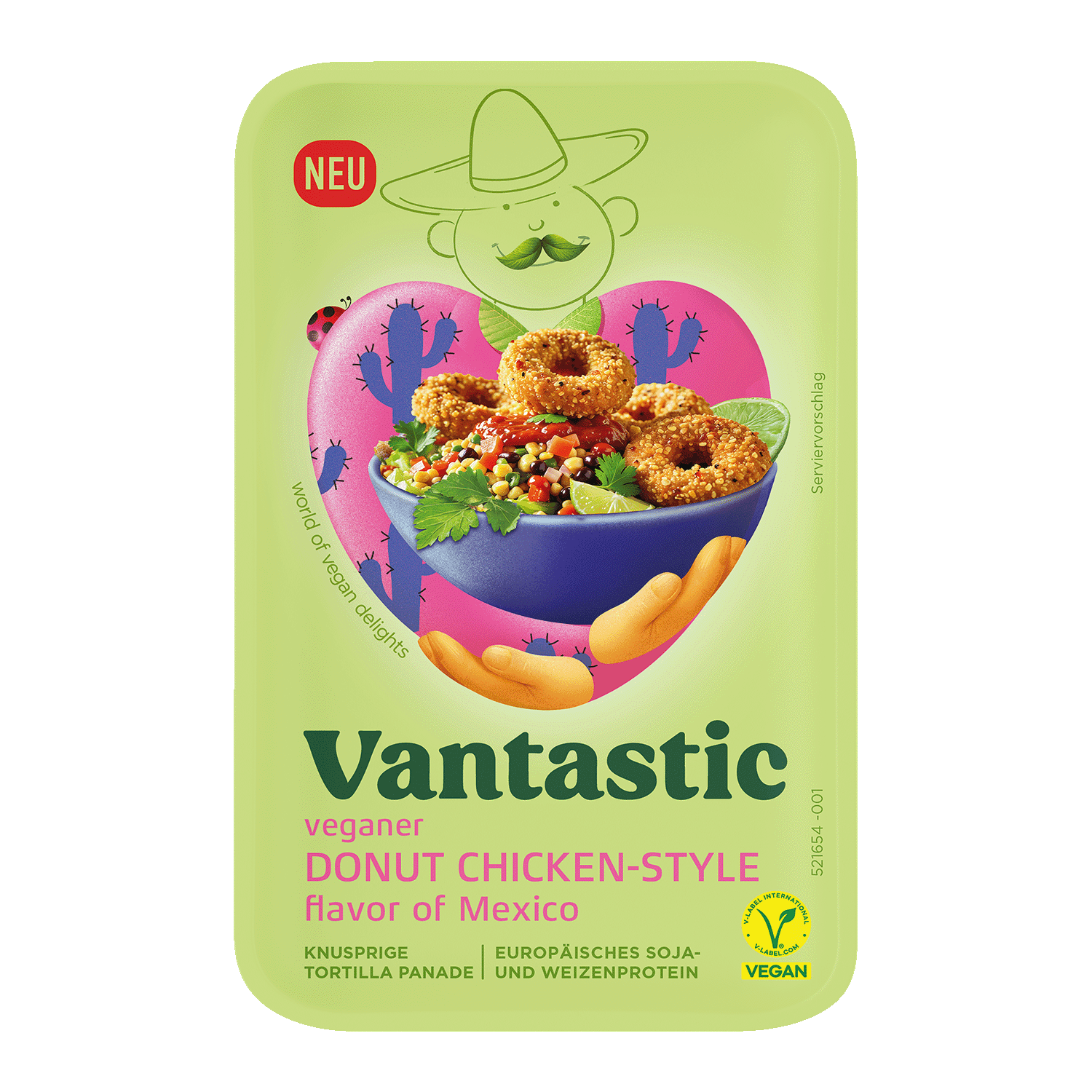 Panierte Chicken-Alternative zum Kringeln – vegan und köstlich! Wie David Lynch zu sagen pflegte: Behalte den Donut im Auge, nicht das Loch. Tun wir. Deshalb gibt’s von Vantastic jetzt Chicken Style Donuts, dank denen wir uns vor Freude kringeln. Herrlich paniert, würziger Chicken-Geschmack und eine leicht feurige Chili-Note. Kurzum: Das handliche Fingerfood knuspert köstlich, schmeckt wie leckeres Hähnchen und snackt sich so spicy, wie es sich für die kleine Sünde zwischendurch gehört. V…