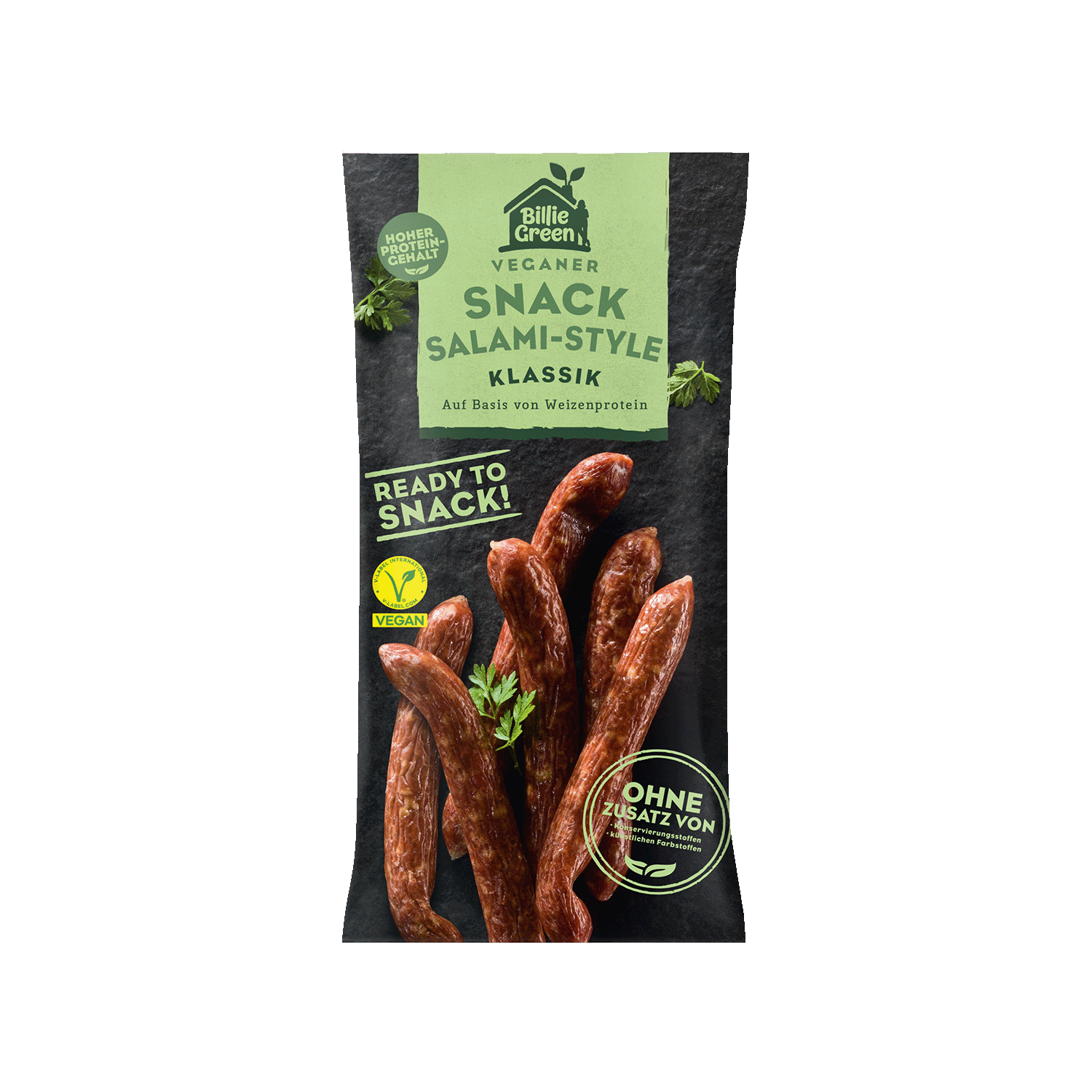 Der Klassiker zum Snacken – 100 % vegan Würzig, rauchig, herzhaft – genau so, wie es sein soll. Und noch ein bisschen besser. Die rein pflanzliche Snack Salami von Billy Green bringt eine der beliebtesten Wurst-Kreationen zurück. Und nicht nur das: Auch auf dem abendlichen Speiseplan steht jetzt wieder vegane Brotzeit mit all deinen Lieblingsklassikern! Und noch mehr Abwechslung am Abendbrot-Tisch bieten dazu die vegane Salami mit Pfeffer, die vegane Salami Klassik am Stück und die vega…