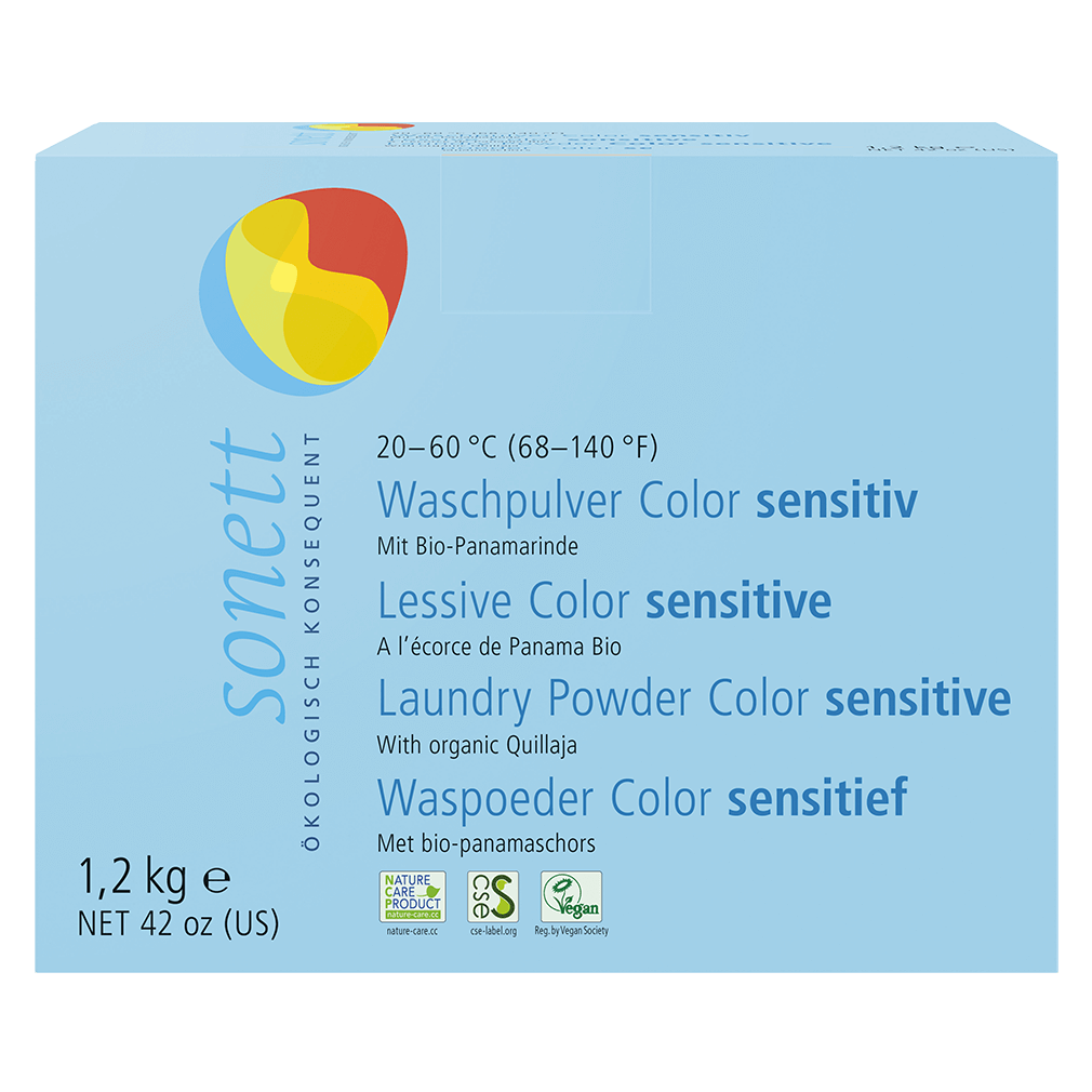 Liebevoll und gründlich: das Waschpulver Color Sensitiv von Sonett. Angereichert mit Bio-Panamarinde und reiner Bio-Pflanzenseife, bietet es eine n…