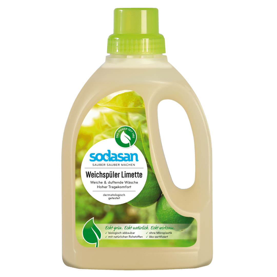 Sodasan Weichspüler Limettel verleiht der Wäsche einen frischen Limettenduft durch ätherische Öle. Entfernt Waschmittelrückstände und sorgt für ang…