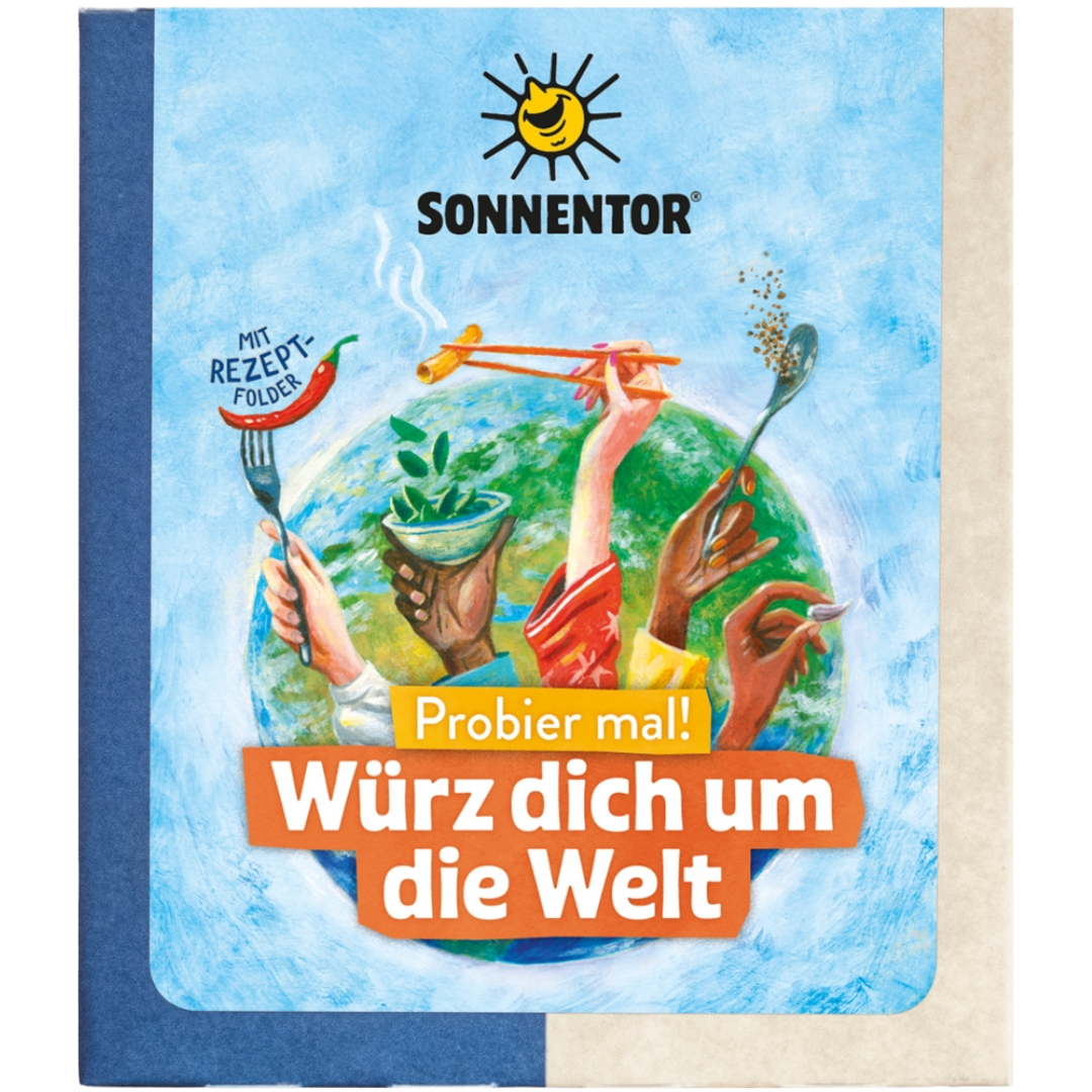 Würz dich um die Welt! Mit Aladin auf dem fliegenden Teppich oder Tante Mizzi auf dem Fahrrad ? diese Probierpackung mit 10 verschiedenen Gewürzmis…