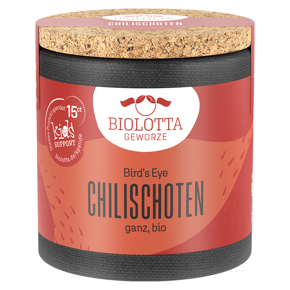 Biolotta Korkdose Chilischoten „Bird Eye Chili“ ganz, bio