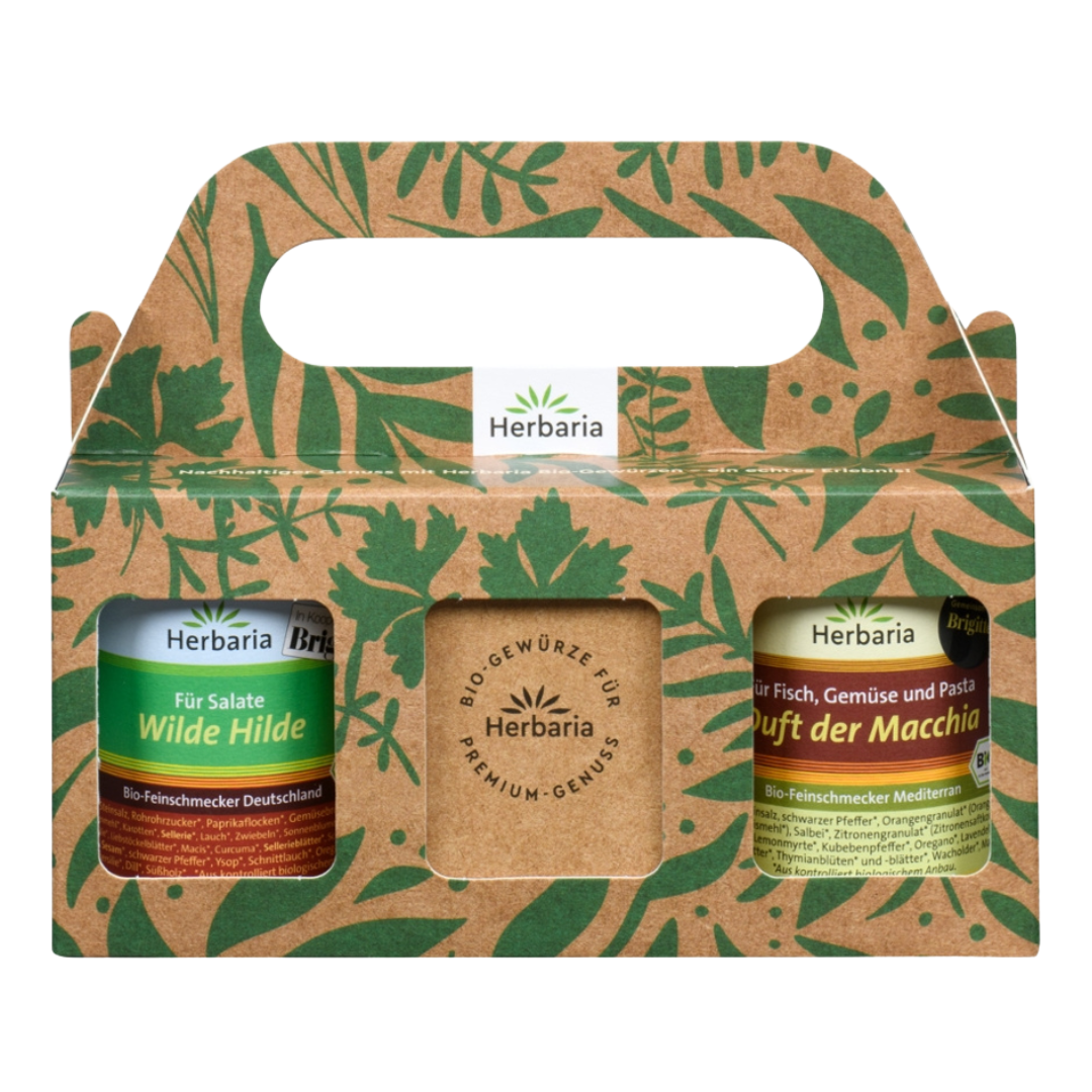 Das Herbaria Bio Gewürze Geschenkset Frühling bringt frische Aromen direkt in deine Küche. Mit den Gewürzmischungen „Wilde Hilde“ und „Duft der Mac…
