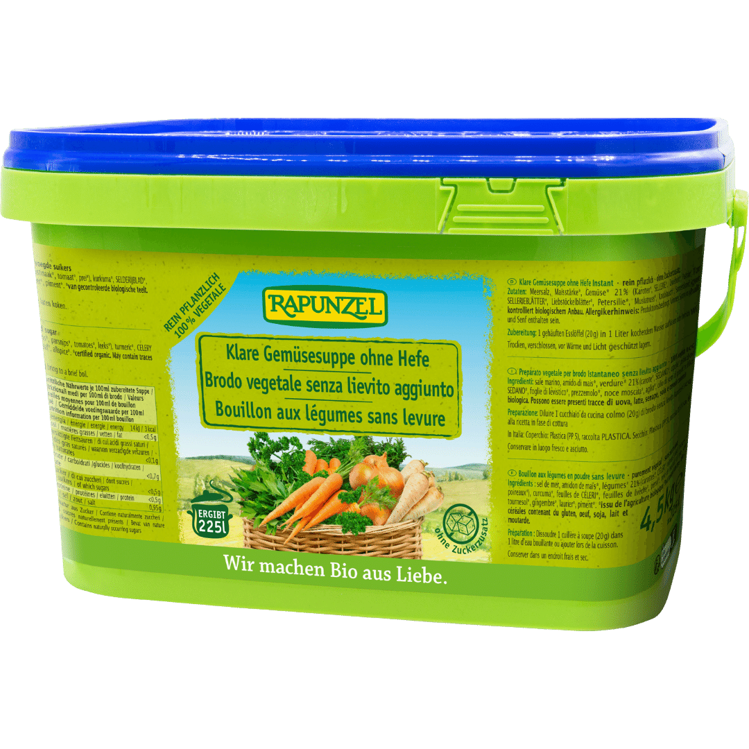 Natürlich, ausgewogen und ganz ohne Hefe: Die Bio Klare Gemüsesuppe ohne Hefe von Rapunzel überzeugt mit hohem Gemüseanteil, aromatischen Bio-Kräut…